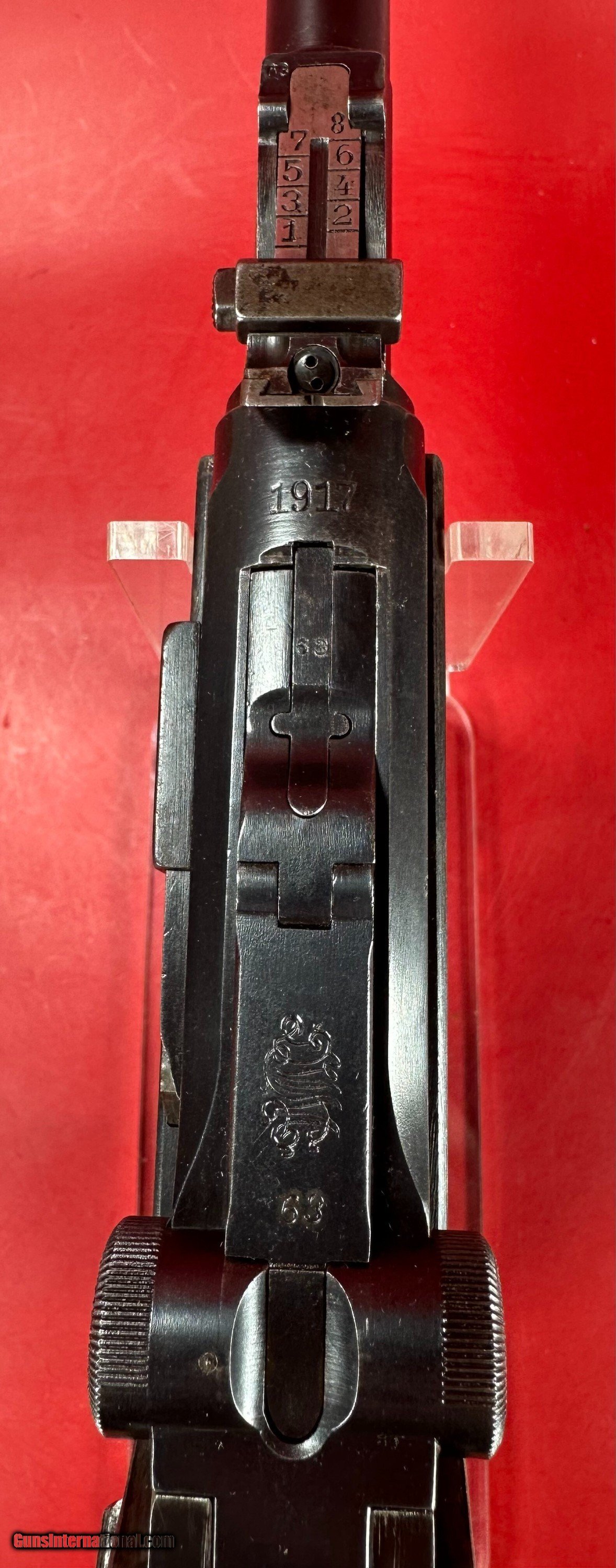 WWI 1917 DWM P08 Artillery Luger. STOCK, TOOLS, 2 MAGS 9mm. Excellent