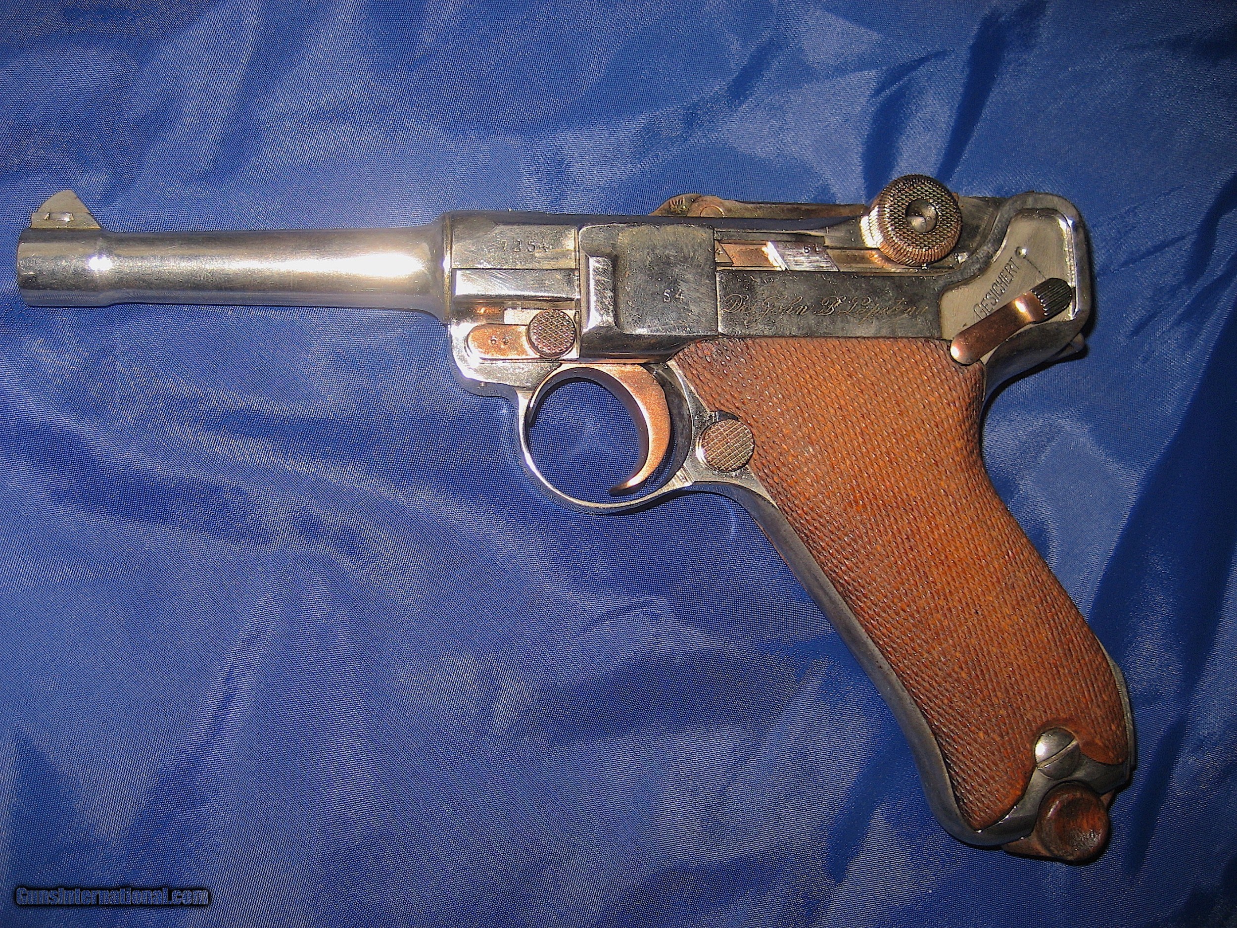 Description: WWI Era P08 Luger Semi-Automatic 9mm Pistol in good condition. This pistol has been nickeled and personalized with the name of "Dr John P Lapatina" engraved in the receiver. Good condition with shiny bore and good riflings. Some wear on front and rear of grip. During WWII, Dr. Lapatina (see photo) was enlisted in the army air corps, and served aboard C-47 transport aircraft as a navigator/radio operator. He served in numerous campaigns supporting airborne operations including the D-Day invasion at Normandy, and Operation Market Garden. His aircraft was often assigned to tow gliders. This luger was brought home with him as a souvenir and later customized. He would go on to become a Dentist, settling in the Ocean View area of Norfolk, VA. He has published a book about his experiences, entitled "We Were a Band of Brothers", not to be confused with the book by Stephen Ambrose. The numbers appear to match on everything except the magazine. The barrel has good rifling, and the action appears to work properly. Dr. Lapetina was born and raised in the Ocean View section of Norfolk. He graduated from Granby High School in 1942. Because of the war, he entered the Army Air Force and trained as a C-47 radio operator. Sent to England to prepare for the D-Day invasion, he served with the 92nd squadron of the 439 troop carrier group attached to the 101st airborne division. His squadron was the very first into Normandy on D-Day, June 6, 1944, towing in two gliders. Dr. Lapetina was also involved in Southern and northern France invasions, a Holland invasion, the Rhine River crossing, and the Battle of the Bulge. His squadron also flew gasoline to General Patton in Germany and transported released prisoners of war. For his service, Dr. Lapetina was awarded wings, the Presidential Unit Award, the Eastern European ribbon, one silver star, one bronze star, the Gold Battle of Normandy medal, a French-awarded diploma, and the Good Conduct medal. After the war, Dr. Lapetina attended the University of Maryland and graduated in 1950 with a Bachelor of Science degree. He attended the Medical College of Virginia-Virginia Commonwealth University and graduated in 1956. He practiced dentistry in Ocean View for 33 years until his 1989 retirement. FFL required due to modification of nickeling. Zelle, vashiers check, money order or personal check accepted. SOLD Curio/Relic: Yes Handgun Caliber: 9x19mm Parabellum (9mm Luger, 9x19mm NATO) Manufacturer: DWM, Deutsche Waffen und Munitionsfabriken Model: P08 Serial Number: 7254a Condition: Good Action: Toggle Manufacture Date: 1917