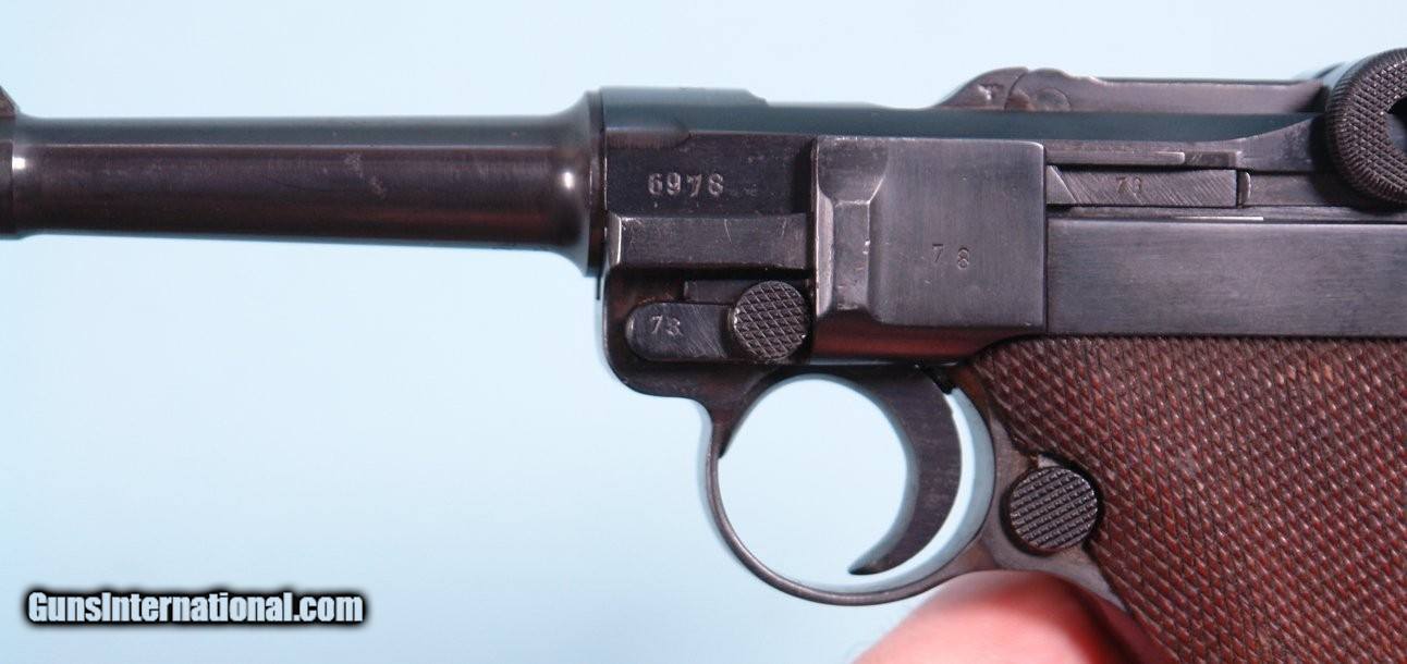 Description: WWII WW2 GERMAN MAUSER CODE 42 1940 DATE LUGER 9MM SEMI-AUTO PISTOL. All original as probable wartime refinish. Looks near mint with all the blue and perfect markings including all perfect Nazi Ordnance Waffenampts. All matching serial numbers in the 69xx range. Correct blued trigger and safety. Magazine not numbered. Perfect working order and excellent bore. Fine looking WW2 Luger. SOLD Curio/Relic: Yes Handgun Caliber: 9x19mm Parabellum (9mm Luger, 9x19mm NATO) |