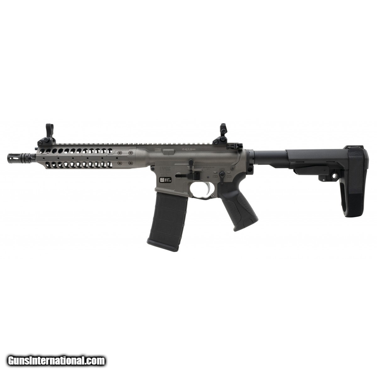 Description: " Semi-auto tactical pistol with a 10.5"" spiral fluted barrel, flip up iron sights and a SBA 3 brace. In a tungsten grey finish. NEW. UPC:850002972917. SOLD |