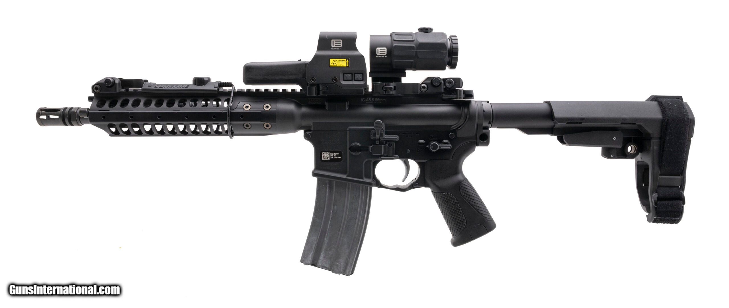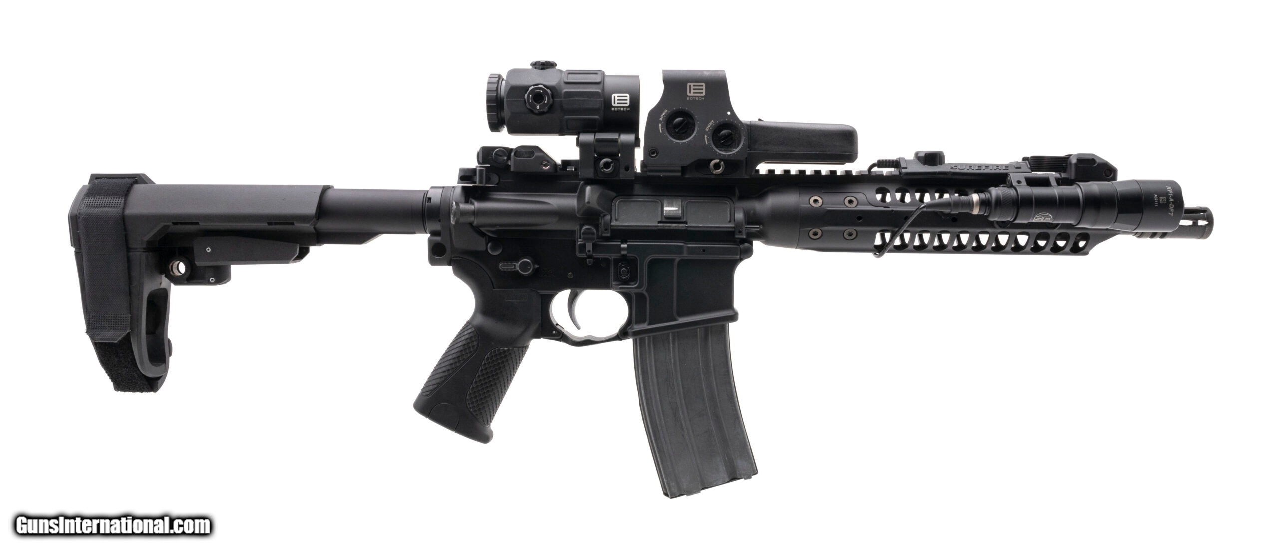 Description: "SN: 25-13643. Modern production 5.56 NATO with an 11"" barrel with flash hider. Bore is bright with excellent rifling. Semi auto, piston operated tactical pistol with EOTECH G45 & 518 HWS combo and Surefire Turbo V3 light and pressure pad. Finish is in excellent condition. LWRC pistol grip is in excellent condition. Comes with box and extra magazine. SOLD |