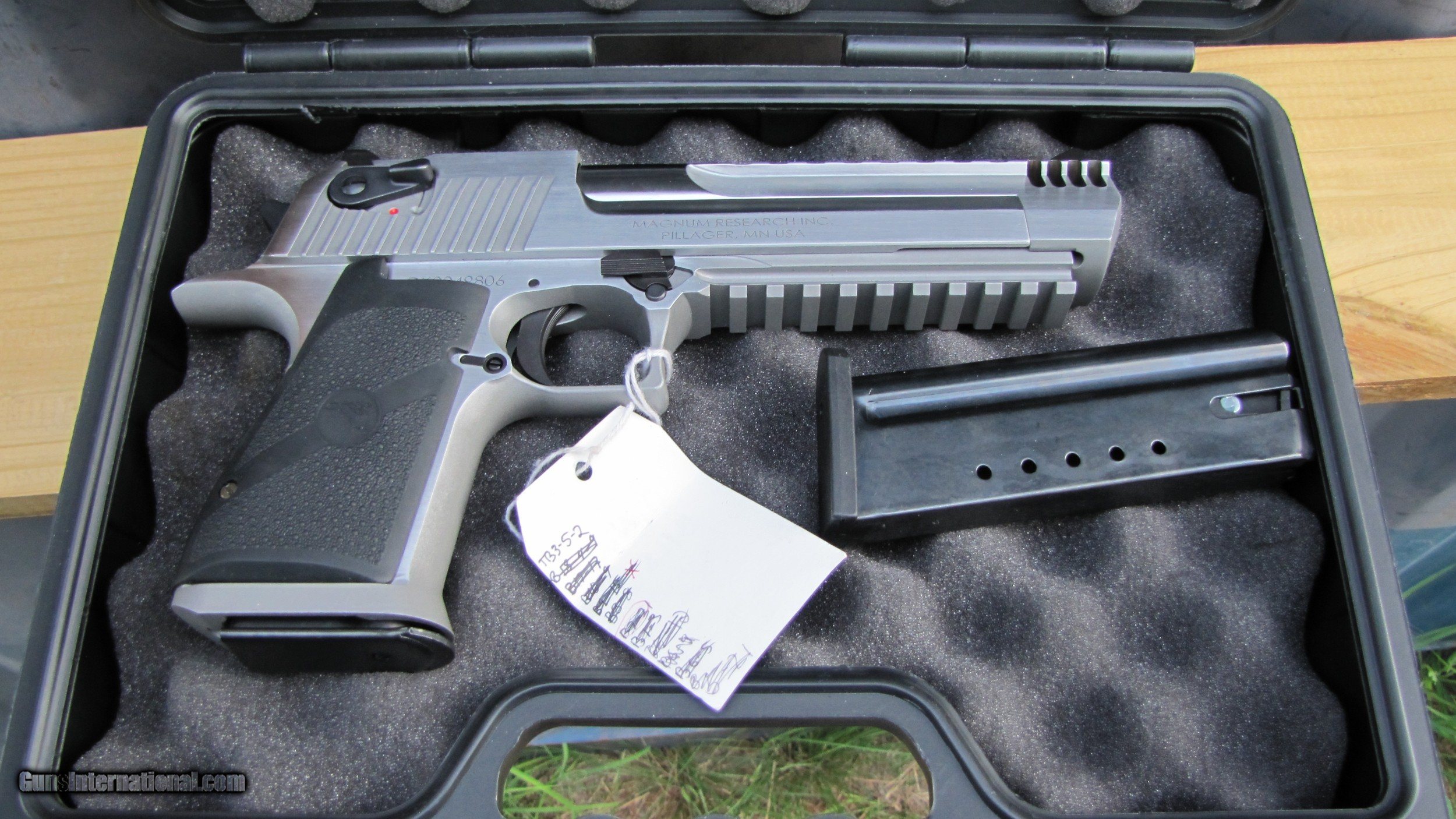 Description: Here is a rare and awesome pistol. It is a Magnum Research Desert Eagle in the potent 429 DE chambering. This pistol is the uncommon stainless version and is ported. Includes original box and (2) total magazines. Great gun. We do have ammo available too if you desire. The ammo is very hard to get at this point and we have (8) boxes available to the buyer. The cost for the ammo would be $795 extra. FREE SHIPPING! We are required to charge 8.25% for Texas residents. There is a 3.5% fee if paying by credit card. SOLD Manufacturer: Magnum Research Model: Deseert Eagle Serial Number: DK0049806 Condition: Excellent Metal Condition: Excellent Wood Condition: Excellent Bore Condition: Excellent |