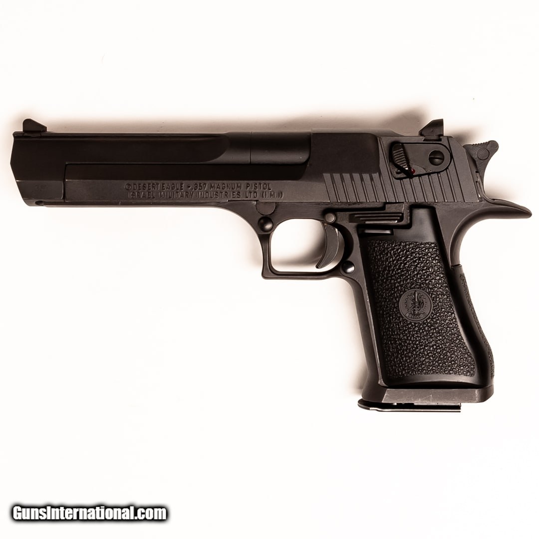 Description: Guns Listing ID: 625129 After 25 years of being accessorized, customized, and re-imagined in countless movies, television shows, and video games, the Desert Eagle has emerged as a pop-culture icon. The power and signature style make this a handgun that people don‚‚t necessarily need but definitely want. This Desert Eagle includes the original box, two 9-round magazines, and a cleaning rod SOLD Manufacturer: MAGNUM RESEARCH Model: DESERT EAGLE Caliber Info: .357 MAG Condition: Used - Certified Barrels: 6.30 barrel Finish: BLACK |