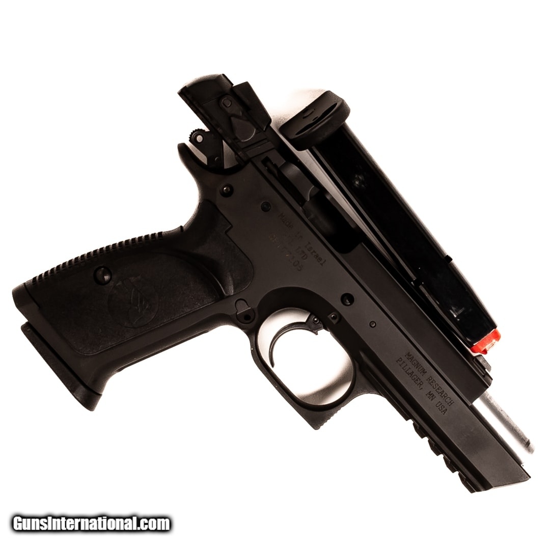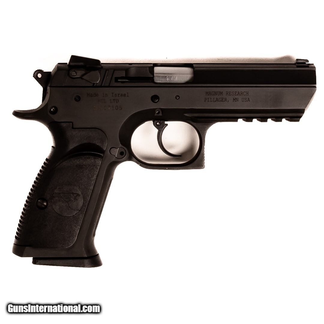 Description: Guns Listing ID: 688017 For sale is a Magnum Research Baby Eagle. This pistol, as it implies, is the baby in the Desert Eagle lineup and is chambered in 9mm. They make great self-defense sidearms and have a proven track record of reliability, functionality, accuracy, and durability. 2-10 round magazines, the original case, and a manual are included. Get the best bang for your buck when you get a Certified Used Firearm . When you see the Certified Used stamp on any of our firearms, you can be confident that you’re getting exactly what you want – a gun only in very good to excellent condition and held to the highest quality standard. All Certified Used Guns come with a ‘no questions asked’ return policy . PLUS, ALL CERTIFIED USED GUNS SHIP FREE! SOLD Manufacturer: MAGNUM RESEARCH Model: DESERT EAGLE Caliber Info: 9MM LUGER (9X19 PARA) Condition: Used - Certified Barrels: 4.4 BARREL Finish: BLACK |