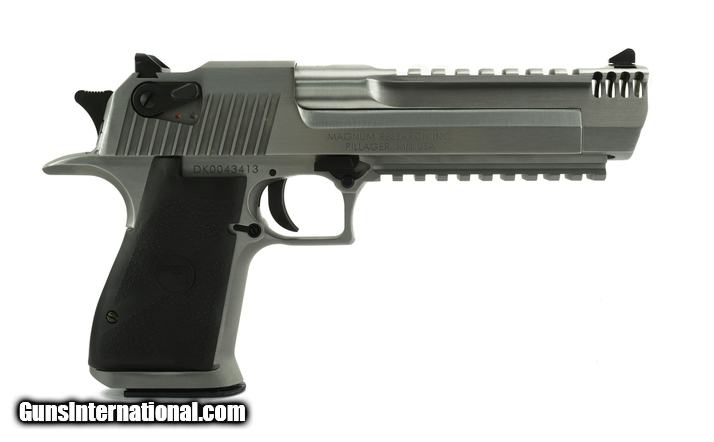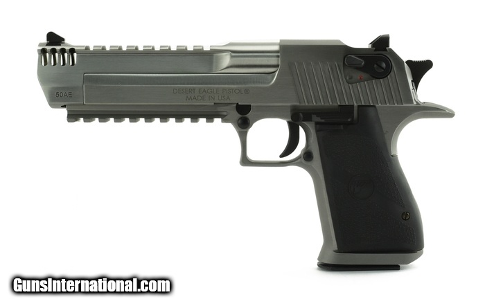 Description: Magnum Research Desert Eagle .50 AE GL caliber pistol. Stainless railed model .50 caliber with muzzle brake. New.