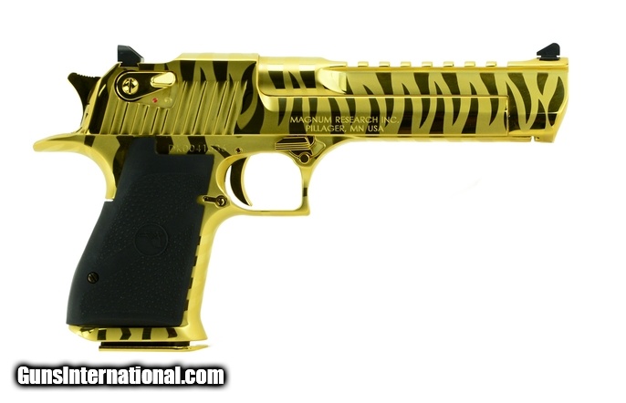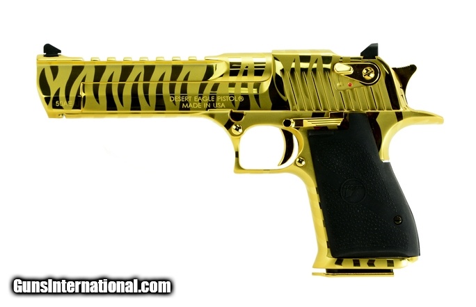 Description: Magnum Research Desert Eagle 50AE caliber pistol. Titanium gold tiger stripe. NEW