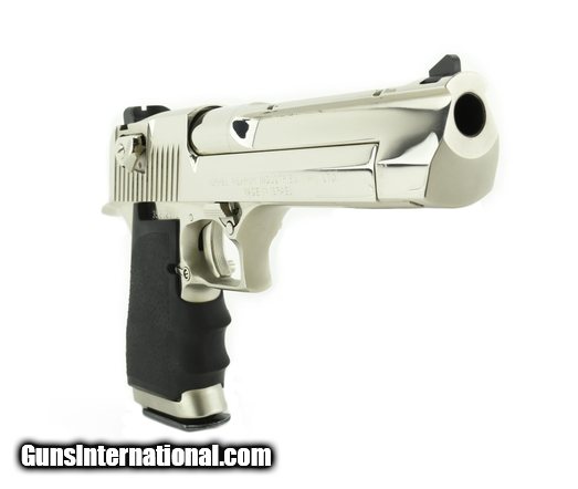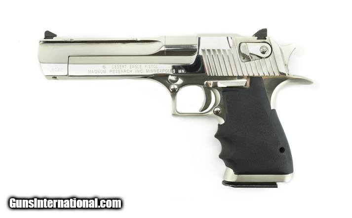 Description: Magnum Research Desert Eagle 50AE caliber pistol. 50 Caliber with nickel finish in excellent condition.