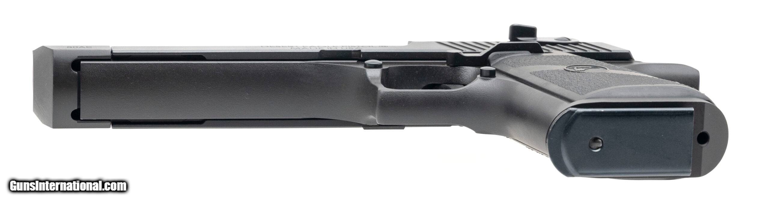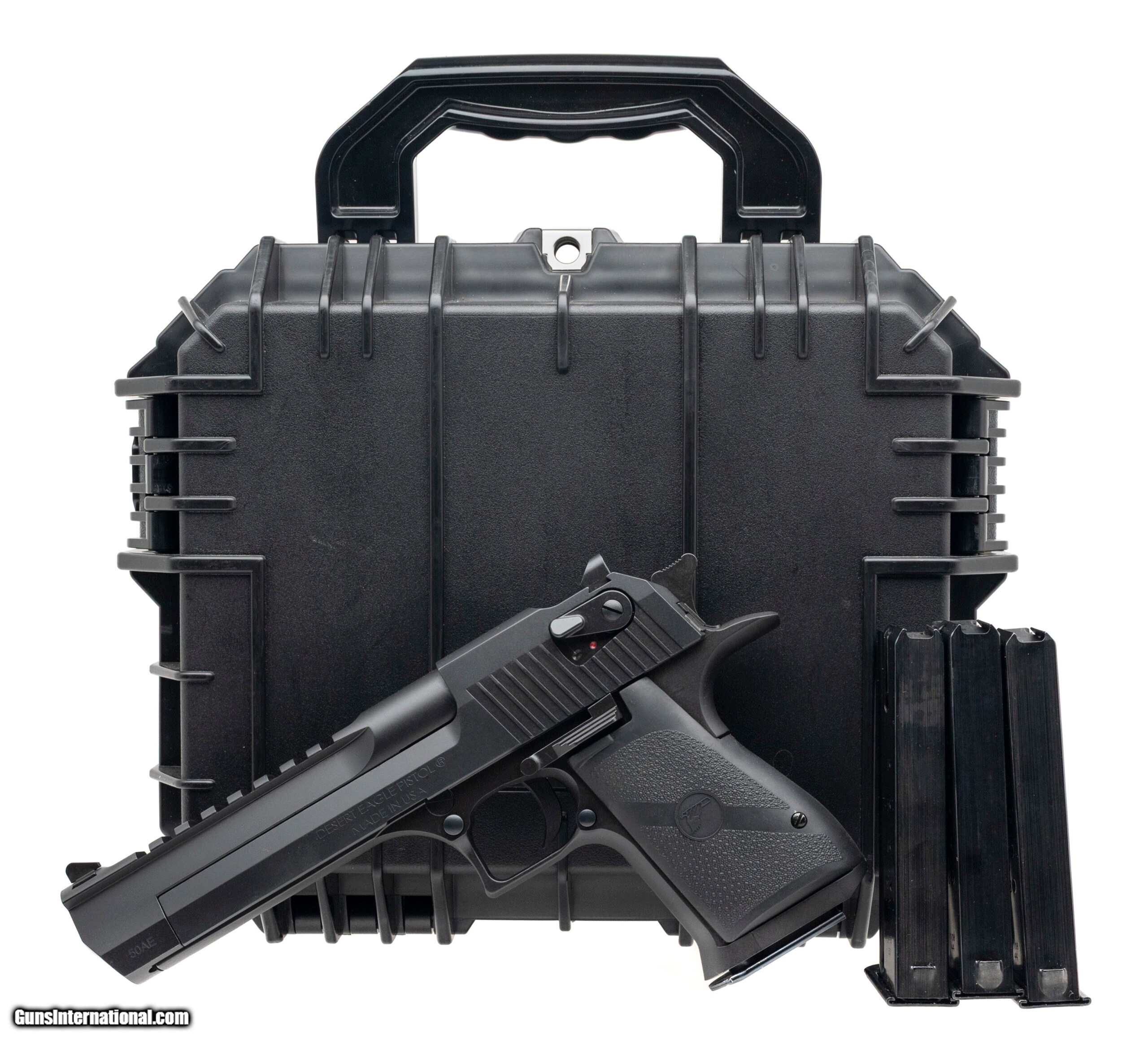 Description: "SN: DK0110053. Modern production, 50AE/.44MAG with a 6"" barrel. Bore is bright with strong rifling. Full size single action semi-auto pistol with an optic rail. Very good condition overall. Comes with a Case Club custom fit hard case, .44 Mag barrel w/two magazines, and an extra 50AE magazine. Price: $2,250.00 Contact Seller |