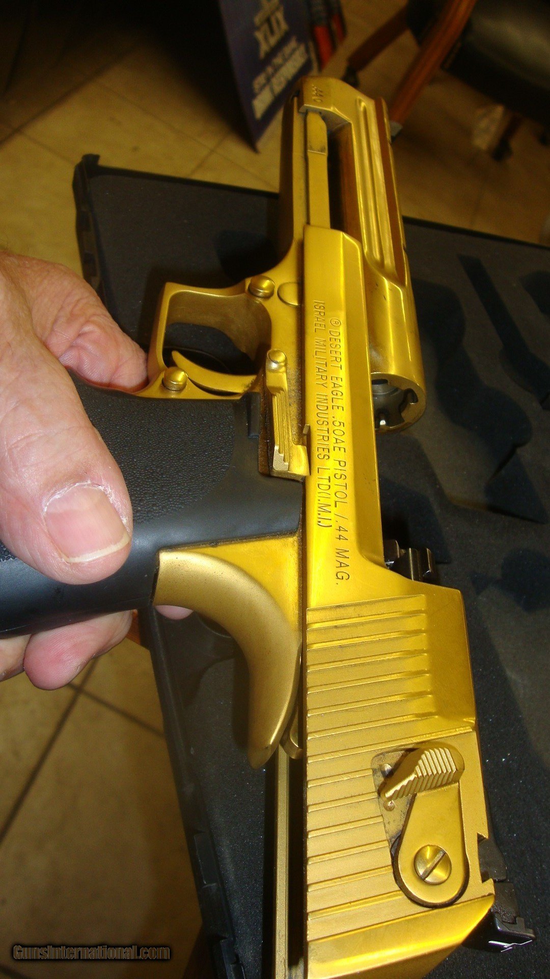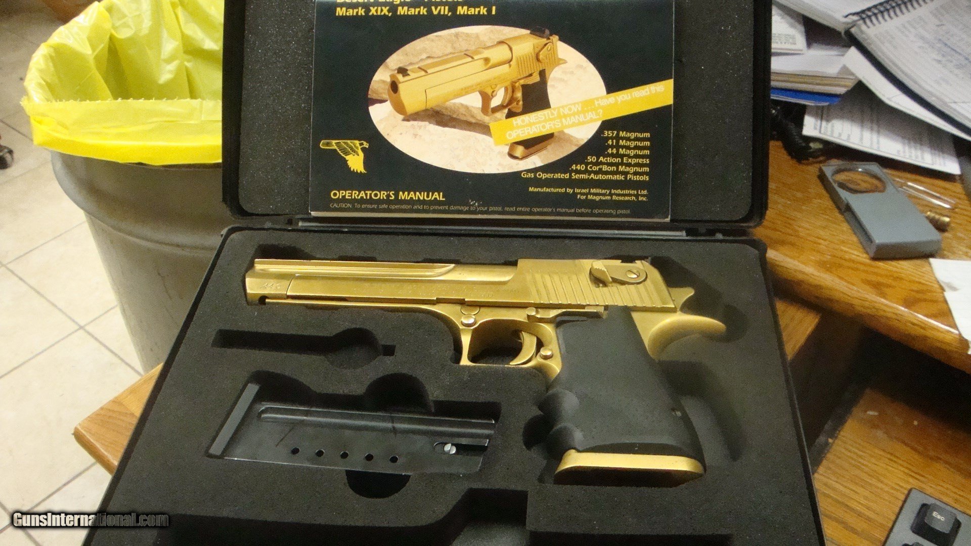 Description: DESERT EAGLE 440 COR-BON TITAMIUN GOLD IN BOX WITH CORECT PAPERS USED VERY NICE SOLD |