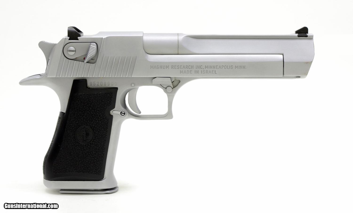 Description: Desert Eagle By Magnum Research .44 Mag Semi Auto Pistol. New In Box Condition AVAILABLE FOR IMMEDIATE PURCHASE AT OUR ONLINE STORE 'Magnum Research Inc. (MRI) is the most recent company to design and develop the Desert Eagle, having done so for more than 25 years. The design was refined and the actual pistols were manufactured by Israel Military Industries until 1995, when MRI shifted the manufacturing contract to Saco Defense in Saco, Maine. In 1998, MRI moved manufacturing back to IMI, which later reorganized under the name Israel Weapon Industries. Since 2009, the Desert Eagle Pistol has been produced in the United States at MRI's Pillager, MN facility.[2] Kahr Arms acquired Magnum Research in the middle of 2010.[3] The Desert Eagle has been featured in roughly 500 motion pictures and TV films, along with several video games making it well known in popular culture.[4] It is said to be increasingly popular among "gangsters, young people, and crime bosses." ' WIKIPEDIA Technical Data DESERT EAGLE