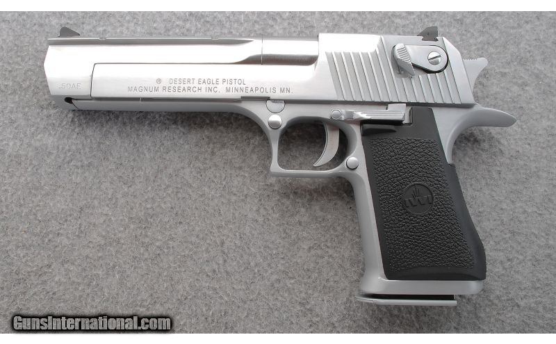 Description: This Desert Eagle is very clean and in like new in box condition. SOLD Caliber Info: .50 AE. Chambers: Semi-auto. Metal Condition: Excellent. Wood Condition: Grips are perfect. Bore Condition: Bright and shiny with strong rifling. Barrels: 6 inch. Triggers: Single. Weight: 4 lbs. 4 oz. Sights: All black fixed read and fixed front blade. Extras: Comes with box. Item Location: Gonzales, LA |