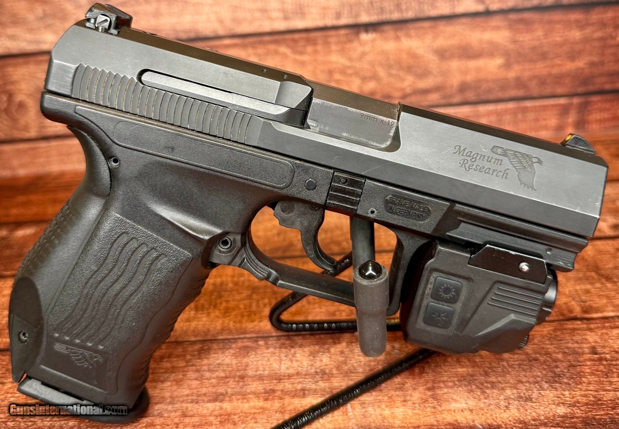 Description: Guns Listing ID: 605402 Magnum Research Baby Desert Eagle chambered in .9mm with a 4.0\" barrel. Overall this pistol is in very good condition: slide and frame show little to no handling marks, and any light cosmetic wear is consistent with normal, careful use. All controls operate smoothly — the trigger pull and function are normal. This is a solid shooter or range piece that presents and operates well. Firearm also includes SIXRAY Green Laser/LED gun light, picatinny weaver rail with magnetic charging (Charger not included) quick release strobe function, laser light combo. Make: Magnum Research Model: Baby Desert Eagle Caliber: 9mm Barrel: 4\" Included- Baby Desert Eagle, Two 15 Round Magazines, Hard Case, Paperwork, Spare backstrap, Spare front sights and Green Laser/LED Gun Light . Manufacturer: MAGNUM RESEARCH Model: BABY DESERT EAGLE Caliber Info: 9MM LUGER (9x19 PARA) Condition: Used - Non-Certified Barrels: 4" BARREL Action: SEMI AUTOMATIC Finish: black Price: $544.99 Contact Seller |