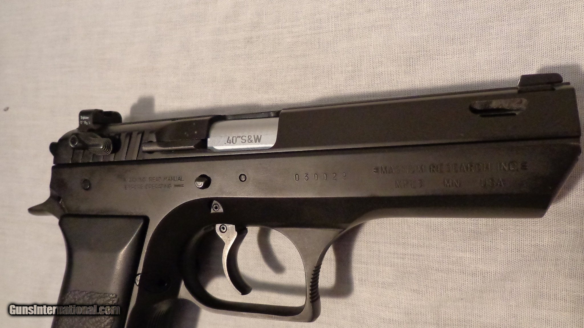 Description: Guns Listing ID: 606052 This pistol is in very good condition showing a couple light handling marks. The barrel is ported. One magazine is included. SOLD Manufacturer: MAGNUM RESEARCH Model: BABY DESERT EAGLE Caliber Info: 40 S&W Condition: Used - Non-Certified Barrels: 4.5 BARREL Finish: BLUED |