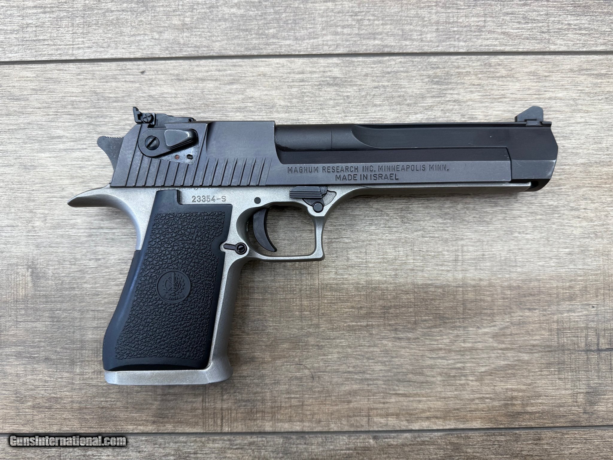 Description: Guns Listing ID: 569716 *USED* IWI DESERT EAGLE MADE IN MID 90‚S CHAMBERED IN .357 MAG ICONIC DESERT EAGLE JUST CAME IN THE DOOR AND NOW ITS AVAILABLE FOR YOU TO BUY. FROM OUR RESEARCH ITS A LATE 80‚s EARLY 90‚s MODEL. COMES WITH 2 ORIGINAL MAGS AND COLLECTORS DISPLAY BOX. MAKE AN OFFER. SOLD Manufacturer: MAGNUM RESEARCH Model: DESERT EAGLE Caliber Info: .357 MAG Condition: Used - Non-Certified Barrels: 6" BARREL Action: SEMI AUTOMATIC |