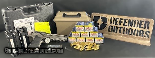 Description: Guns Listing ID: 534827 Desert Eagle Pistol 429 DE, + 7 Mags, 9 Boxes of Ammo, Original Case and Casting Die Magnum Research DE429SRMB Desert Eagle Mark XIX 429 DE 7+1 6\" Stainless Steel w/Integral Muzzle Brake & Picatinny Rail Barrel, Serrated Stainless Steel Slide & Frame w/Beavertail & Picatinny Rail, Black Rubber Grip, Ambidextrous Safety, Right Hand The Mark XIX Desert Eagle is a gas-operated, semi-automatic pistol with a trigger reach of 2.75\" and a sight radius of 8.5\". The construction of the Mark XIX Desert Eagle utilizes the latest CNC machine technology providing exacting specifications with tight tolerances creating a work of art in a precision firearm. The grip is anatomically formed and provides an ideal hand seating angle for two-handed shooting allowing for comfortable, rapid and accurate firing. The picatinny style accessory rail easily allows for aftermarket optics and scope rings. Brand Magnum Research Category Pistols Series Mark XIX Model Desert Eagle Caliber 429 DE Barrel Length Range 6\" to 6.99\" Capacity 7+1 Action SAO Frame Finish Stainless OAL 10.75\" Frame Material Stainless Steel Hand Right Hand Sight Style Fixed Slide Finish Stainless Slide Description Serrated Barrel Finish Stainless Steel Barrel Material Stainless Steel Muzzle Integral Muzzle Brake Twist 1:18\" Grips Black Rubber Sight Configuration Fixed Combat Height 6.25\" Safety Ambidextrous Width 1.25\" Barrel Description Integral Muzzle Brake / Picatinny Rail Barrel Length 6\" Max Capacity 7 Weight 75.20 oz Frame Description Stainless Steel Frame w / Beavertail & Picatinny Rail SOLD Manufacturer: MAGNUM RESEARCH Model: DESERT EAGLE Caliber Info: .429 DE Condition: Used - Non-Certified Barrels: 6 BARREL Action: SEMI AUTOMATIC Finish: STAINLESS Weight: 4.7 LBS. |
