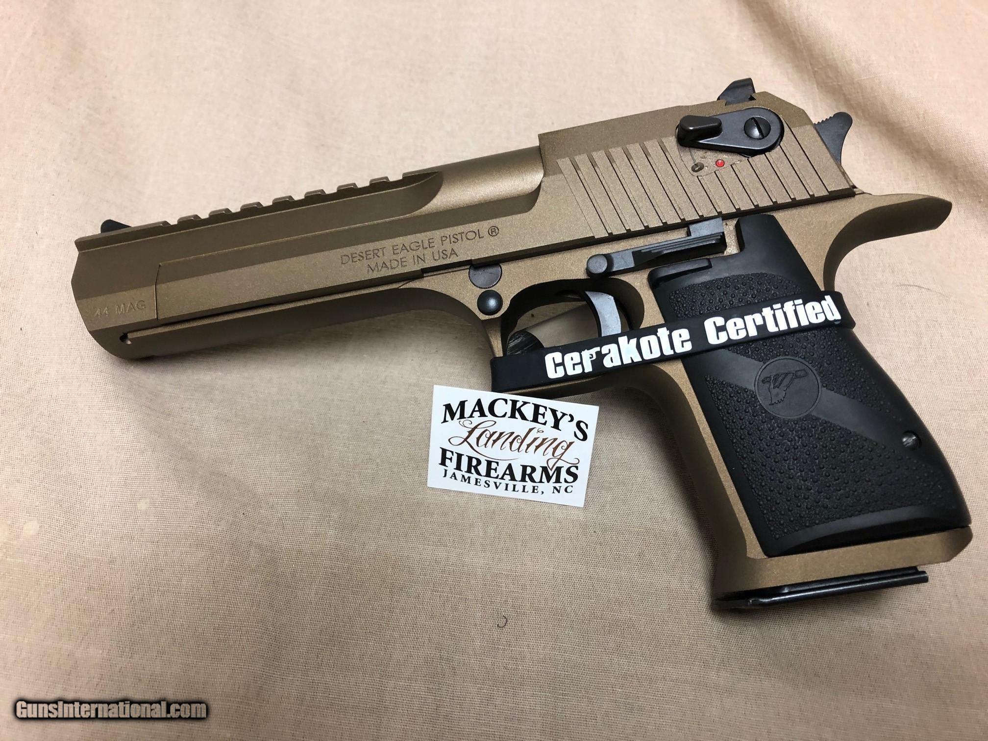 Description: New Magnum Research Desert Eagle Chambered in .44magnum, 6" Barrel Color, Burnt Bronze (Cerakote) This is a Factory finish. This is a New Pistol SOLD Manufacturer: Magnum Research Model: Desert Eagle Barrel Length: 6 Caliber Info: .44 Magnum Condition: New Action: Semi Auto Single Action Sights: Fixed, black contrast |