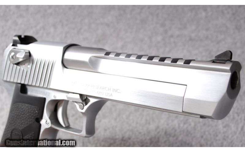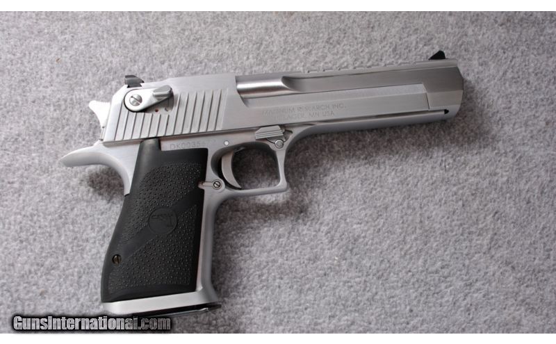 Description: SOLD Caliber Info: .50 AE Chambers: 7 round magazine Metal Condition: Insignificant handling marks Bore Condition: Bright and clean with strong rifling Barrels: 6 1/4 Triggers: S/A. 4 pound pull. Stock: Textured rubber. Weight: 70 Oz. Sights: Notched rear sight. Front blade. Extras: Hard case and holster Item Location: Billings, MT |
