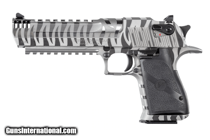 Description: Guns Listing ID: 1283204 After 25 years of being accessorized, customized and re-imagined in countless movies, television shows and video games, the Desert Eagle Pistol has emerged as a pop-culture icon. You can customize your Desert Eagle Pistol with a variety of impressive finishes to add your own distinctive twist to this timeless firearm. All models feature a full picatinny style accessory rail on the barrel from the end of the chamber to right behind the front sight and standard ambidextrous safeties. The Mark XIX Desert Eagle is a gas-operated, semi-automatic pistol with a 7 round capacity in .50 AE and 8 round capacity in .44 Magnum. The gun measures 10.75” in length with a 6” barrel, or 14.75” in a 10” barrel available in black as an aftermarket item. Width is 1.25”, height 6.25” and the weight with an empty magazine is approximately 72 ounces. It has a trigger reach of 2.75” and a sight radius of 8.5” with the 6” barrel. The construction of the Mark XIX Desert Eagle utilizes the latest CNC machine technology providing exacting specifications with tight tolerances creating a work of art in a precision firearm. The grip is anatomically formed and provides an ideal hand seating angle for two-handed shooting allowing for comfortable, rapid and accurate firing. The picatinny style accessory rail easily allows for aftermarket optics and scope rings. SOLD Manufacturer: MAGNUM RESEARCH Model: DESERT EAGLE Caliber Info: .50 AE Condition: new Barrels: 6 BARREL |