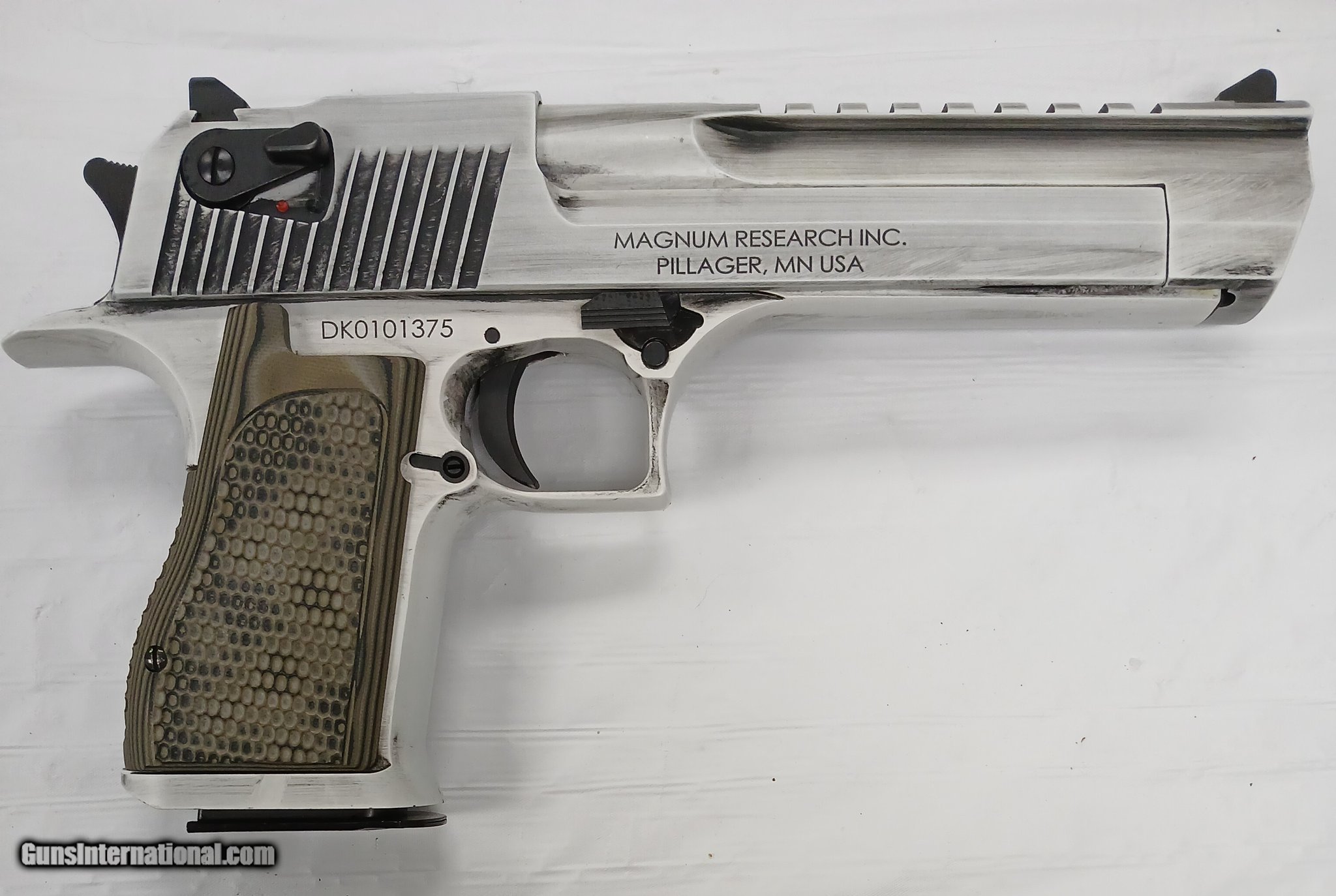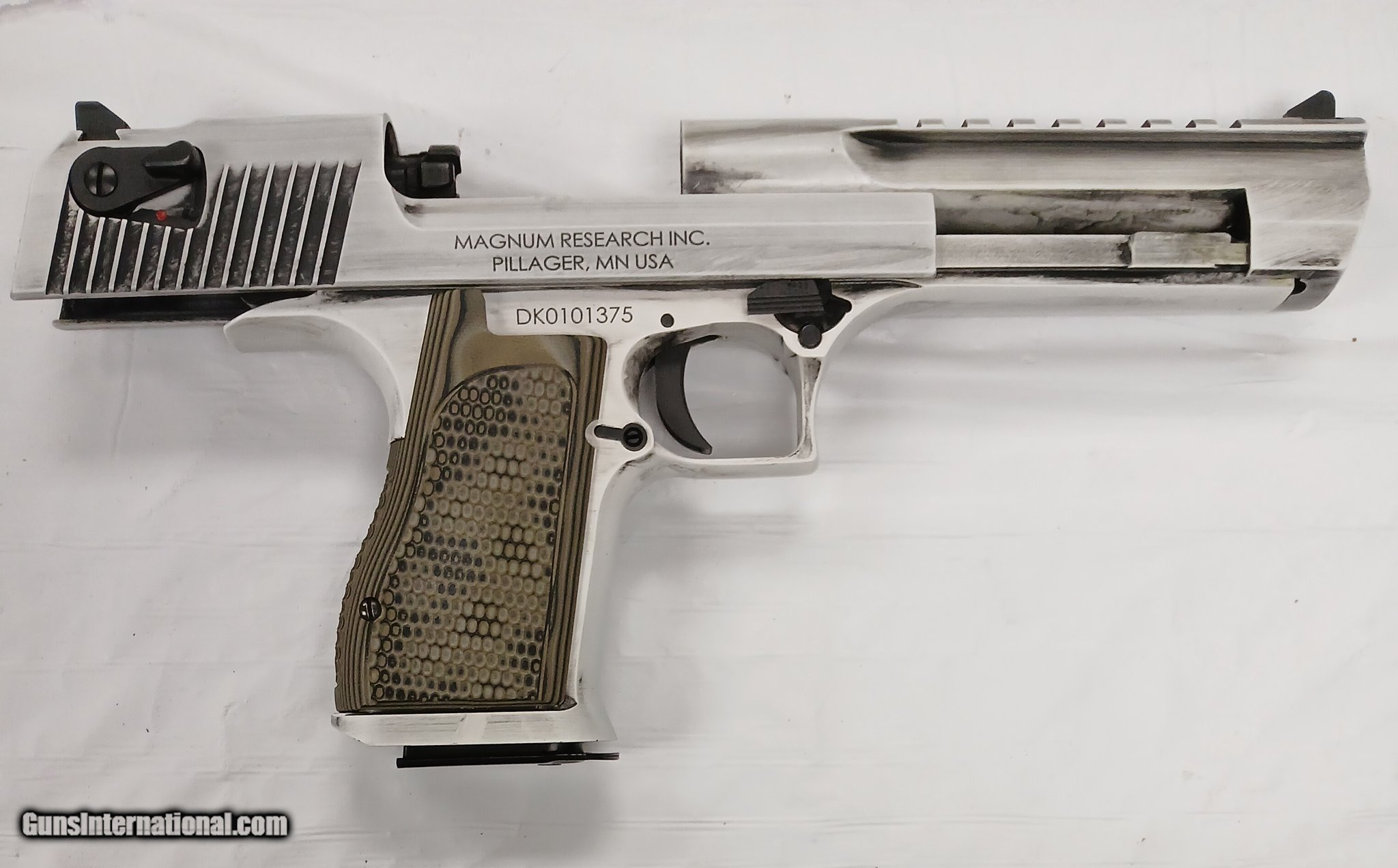 Description: Guns Listing ID: 470949 In excellent condition, comes with hard case, magazine and gun sock, take a look at the pictures for reference! SOLD Manufacturer: MAGNUM RESEARCH Model: DESERT EAGLE Condition: Used - Non-Certified Barrels: 6 Gauge Info: .50 AE Finish: DISTRESSED WHITE |