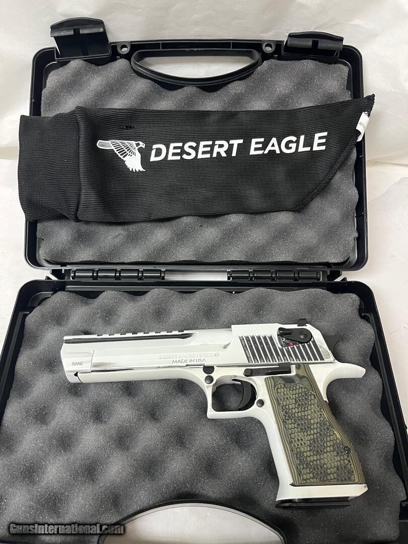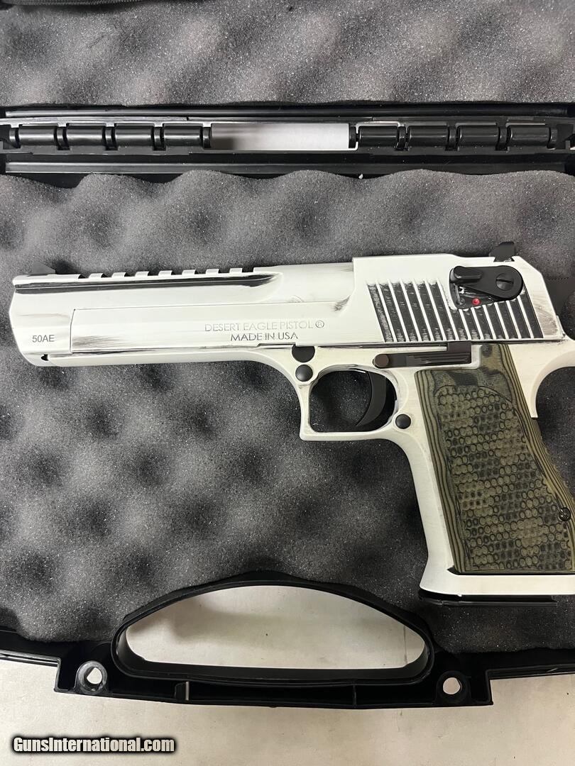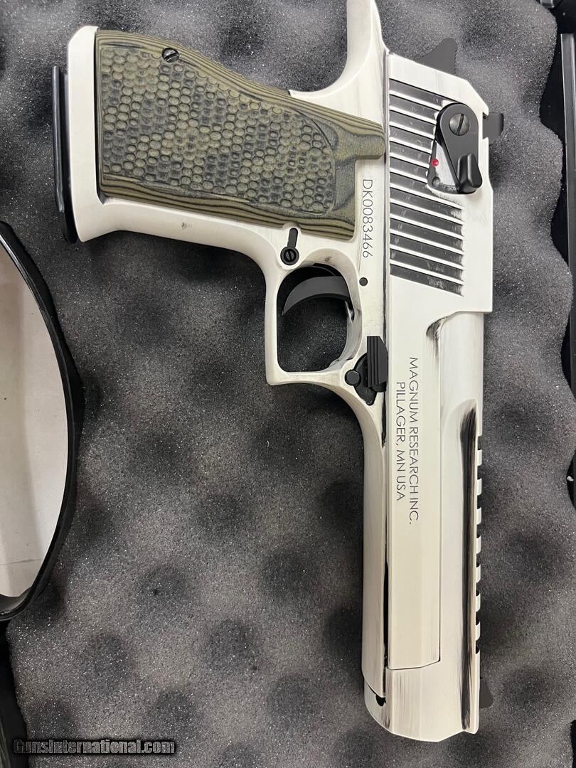 Description: Guns Listing ID: 513836 Comes in factory box with 1 7 ROUND MAGAZINE Refer to photos for accessories & condition. Manufacture: MAGNUM RESEARH Model: DESERT EAGLE Caliber: .50 AE Capacity: 7 Rounds Action: Semi-Automatic Barrel Length: 7.0 INCHES Finish: Black Sights: Factory Serial Number: DK0083466 ((JR)) SOLD Manufacturer: MAGNUM RESEARCH Model: DESERT EAGLE Caliber Info: .50 AE Condition: Used - Non-Certified Barrels: 6 Action: SEMI AUTOMATIC Finish: white |