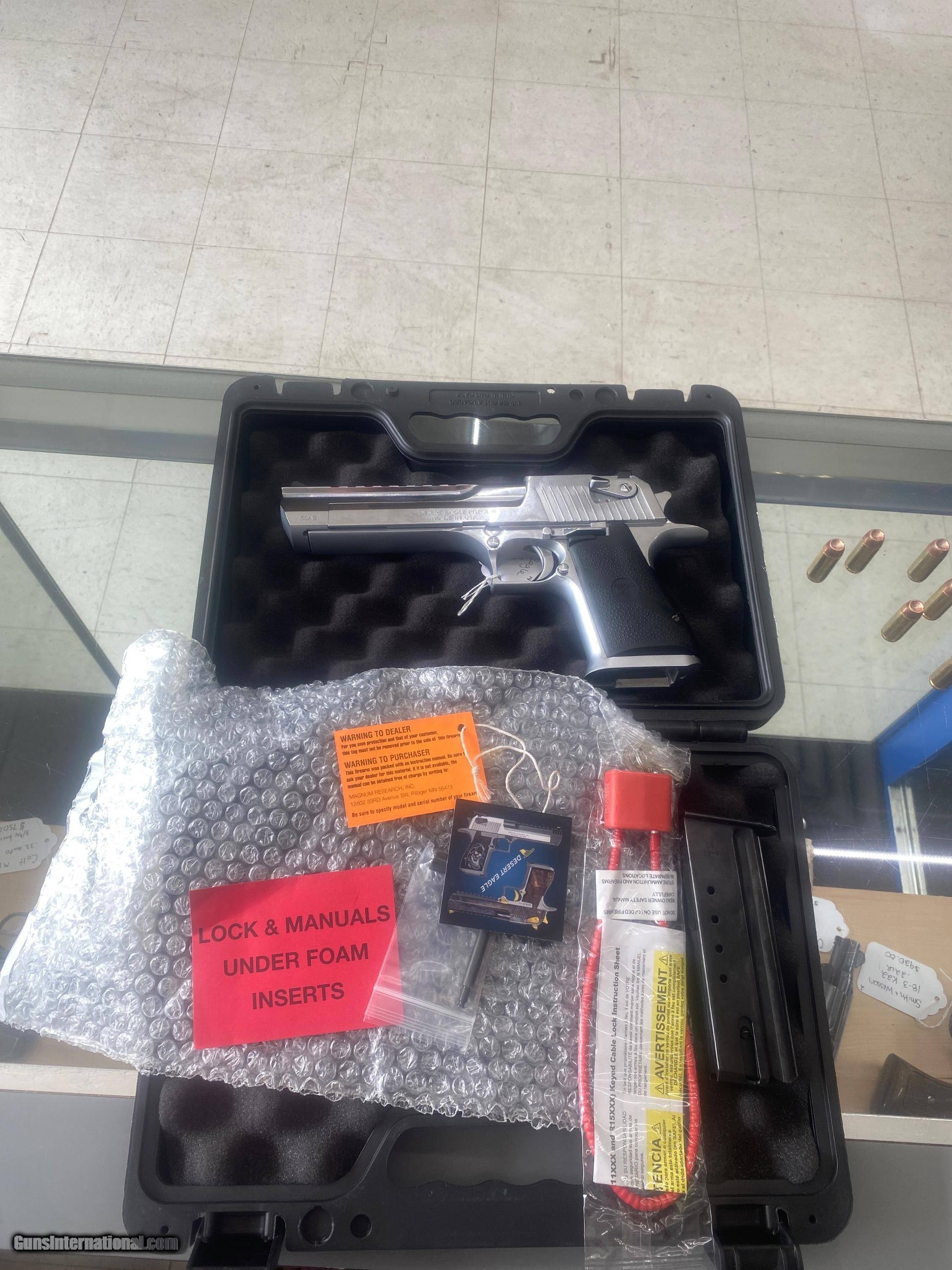 Description: SOLD. I have a beautiful polish/chrome magnum research Desert Eagle, it holds a 6 inch barrel, it comes with the original case magazine and all paperwork, it is a hand cannon, in brand new condition, it is a beautiful gun it turns a lot of heads, for any more information please feel free to call or text 1-937-213-3803, Ohio residents feel free to come to the shop and pick up, shipping on handguns is usually $25, you must call shop to pay it ships out same day, or next after paid in full, we also take cashiers checks but handgun will not ship until cleared, thanks must ship to Ffl! Any other hard to fine guns or rare items feel free to ask trying to list about five a week! Also take trade ins! SOLD Handgun Caliber: .50 Action Express Manufacturer: Magnum research Model: Desert eagle Barrel Length: 6 |