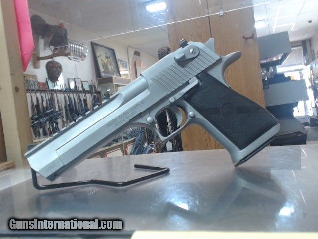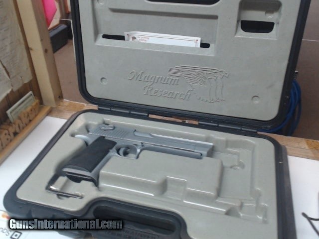 Description: Guns Listing ID: 676739 Specifications and Features: Magnum Research Desert Eagle Semi Automatic Pistol DE50 Gas-Operated Rotating Bolt Single Action .50 Action Express (.50AE) 6\" High Quality Carbon Steel Barrel 1:19\" Twist Rate High Quality Carbon Steel Frame/Slide Full Weaver Style Accessory Rail Combat Type Fixed Sights Black Grips 7 Round Magazine Approximately 4lb Trigger Pull Trigger Reach 2.75\" Sight Radius 8.5\" Overall Length 10.75\" Height 6.25\" Slide Width 1.25\" Overall Weight (Empty Magazine) 4lbs 5.8oz SS Finish SOLD Manufacturer: MAGNUM RESEARCH Model: Desert Eagle 50AE Caliber Info: .50 AE Condition: Used - Non-Certified Barrels: 6 BARREL Finish: STAINLESS |