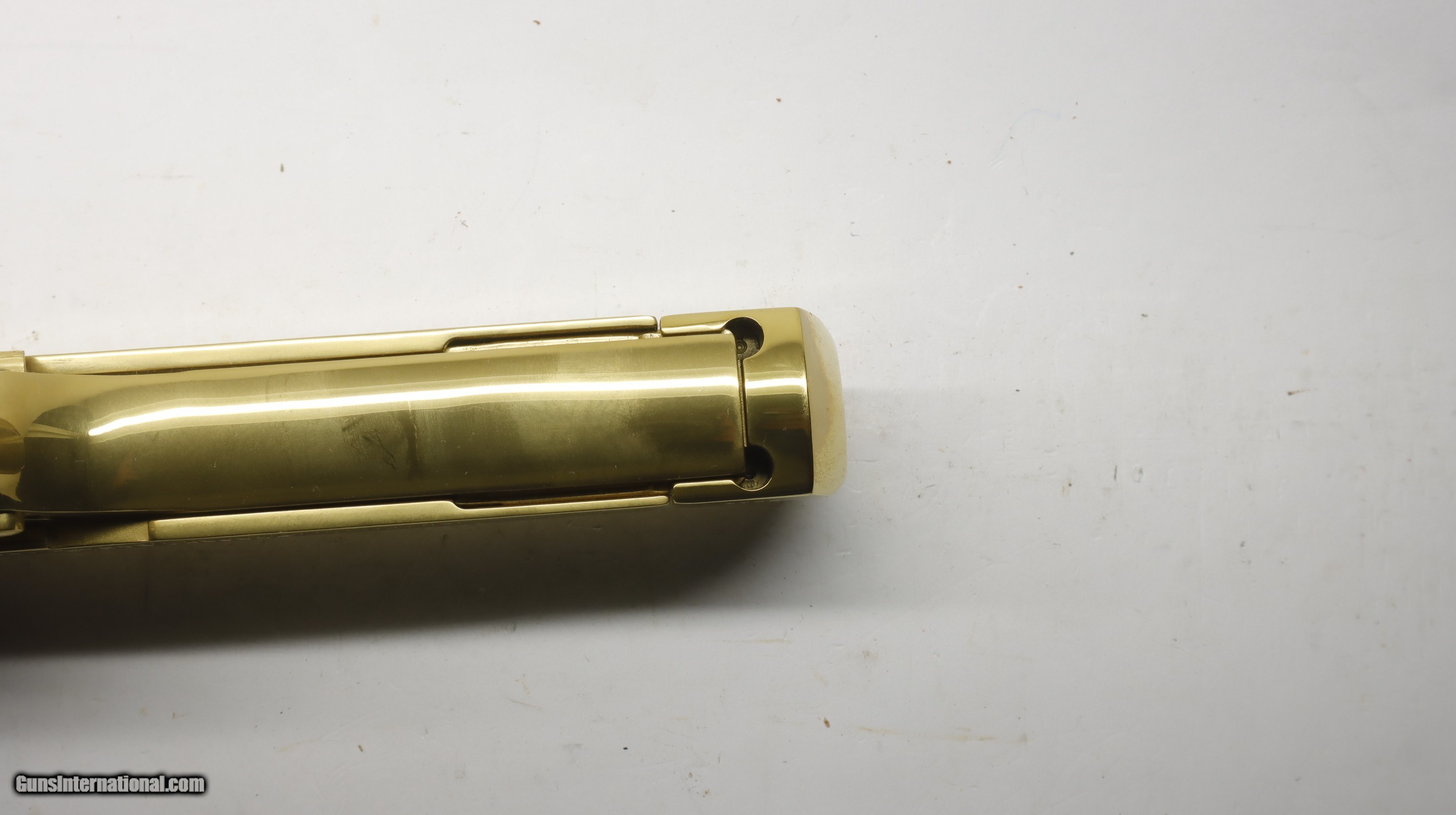 Description: Magnum Research Desert Eagle, Made in Israel 50AE, 6" barrel. Gold. One factory mag, SN is 332010xx. New old stock in factory hard case. We will trade for silver and gold. All my guns (except layaway) come with a non-firing, 3 day unconditional return privilege, from the day UPS delivers to your dealer. Buyer pays shipping both ways if the gun comes back. Please make sure to make it to your FFL to inspect within the 3 days. We accept personal check, any certified funds, Vennmo or Zellle. We can also take your credit card, +3%. Email me if you would like these pictures sent to you, they will come through bigger and better than on the listing page here. We do offer Layaway. Our standard terms are 25% down, 90 days. Initial deposit is not refundable. Layaway guns do not have a return/inspection period. Email me with any questions. Please check your local laws to confirm it is legal to own in your state! Buyer pays $30 shipping and insurance to your FFL in the lower 48. AK, HI or PR is extra. I will ship to California, as long as it is legal, NO PROBLEM! I am a licensed FFL, and will include a copy of my FFL with the gun for your dealer’s records. I will ship to a C&R if the gun is eligible. I will ship to California, but you need to confirm the gun is legal where you are, California or other. WE BUY AND CONSIGN GUNS AND GUN COLLECTIONS! Will travel! I am always looking for good clean, old original Winchesters to buy, consign, or trade, especially Pre '64's model 70's and model 54's. WE ALSO TRADE FOR CLASSIC CARS AND TRUCKS! We also trade for gold and silver. SOLD Handgun Caliber: .50 Action Express Manufacturer: Magnum Research Model: Desert Eagle Barrel Length: 6 Condition: New Old Stock |