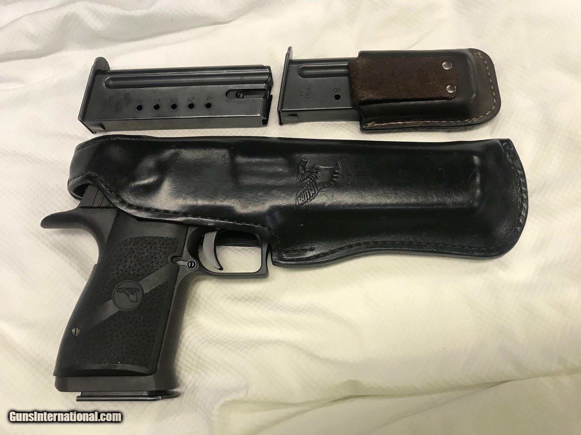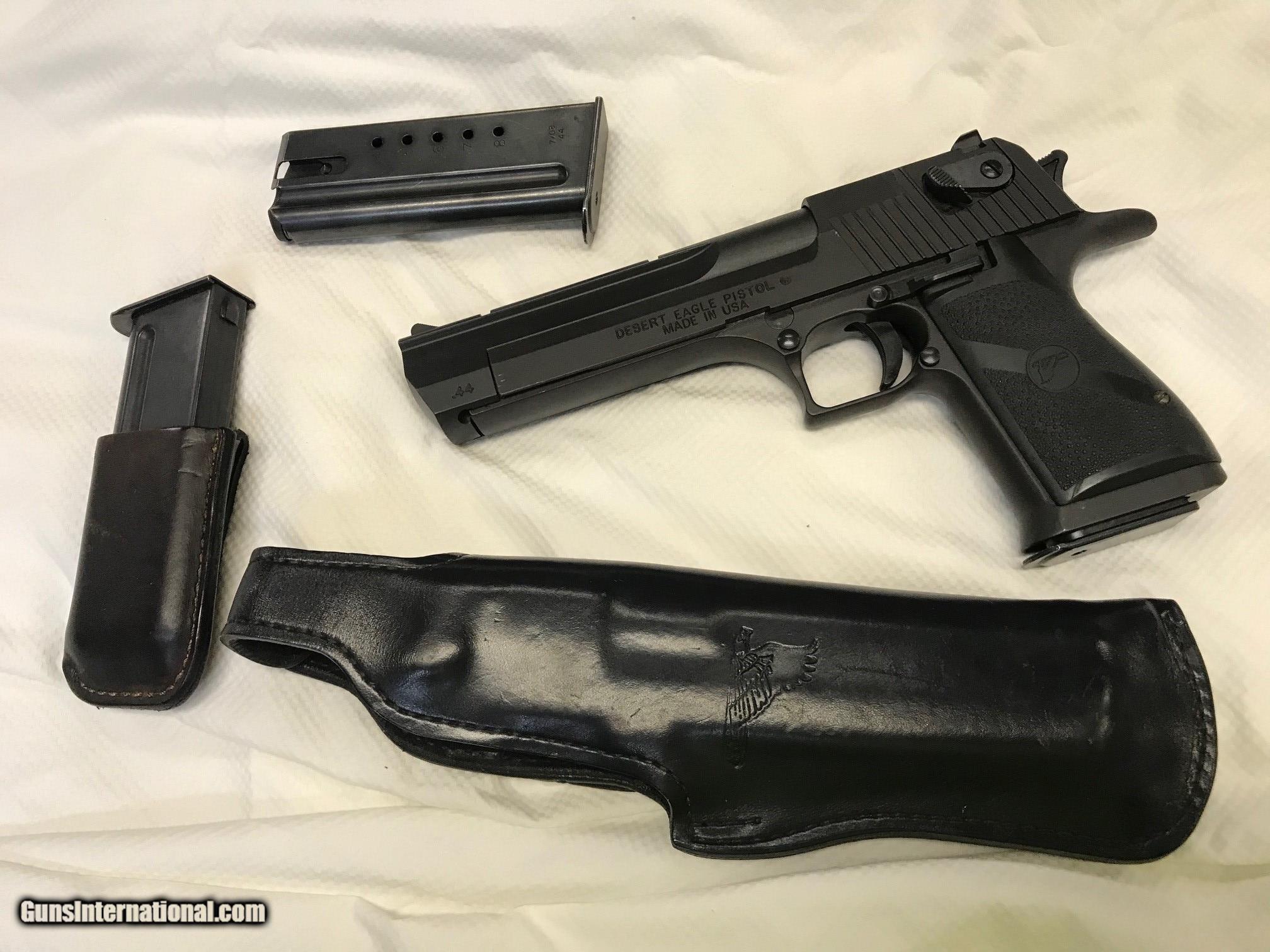 Description: This is a very nice USA (Minneapolis, MN.) made Desert Eagle in great condition, includes holster, 3-mags, and mag pouch. This gun has been fired but very little 95%+. Ship to lower 48 only shipping $30.00 including insurance, no California sales, Arkansas residence pay 7.75% tax, check your local and state laws prior to purchasing. Gun will only be shipped to verified FFL, buyer to provide FFL for receipt and transfer of firearm. Three day no shoot return policy does not include return shipping costs in the refund. Returns only accepted if item is not as advertised, we strive to be very accurate in our item descriptions and also to provide very high quality photo's. Please ask questions to be sure you are satisfied with the item before buying. We buy sell and trade firearms, also 60 day layaway available on most items over $500 with 20% down. Down payment is none refundable if balance is not received in 60 days of purchase date. 3.5% fee’s are charged for credit / debit card usage. SOLD Manufacturer: Magnum Research Model: Desert Eagle Serial Number: MR006491 Caliber Info: .44 Mag. Pistol Bore: excellent Ejectors: near new Condition: Very Good Metal Condition: Very Good Bore Condition: Good with good riffling Barrels: 6 Action: Semi Auto Extras: holster, 3-mags, mag pouch |