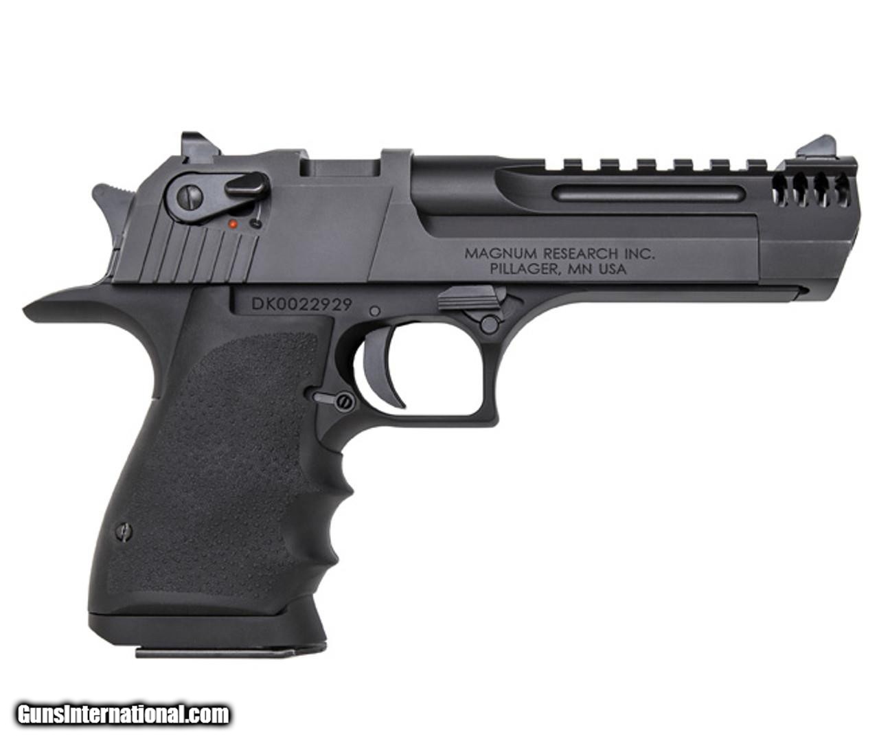 Description: Manufacturer: Magnum Research Model: Desert Eagle® Mark XIX L5 SKU: DE50L5IMB Caliber: .50 AE Capacity: 8 Rounds Sights: Combat Type, Fixed Barrel Length: 5" High Quality Carbon Steel Barrel, Frame and Slide w/ Full Weaver Style Accessory Rail and Integral Muzzle Brake Overall Length: 9.75 Finish: Black Aluminum Frame / Black Steel Slide Grips: Black Hogue Finger Groove Weight: 2 lbs 14.6 oz All items are factory new in box unless otherwise stated. Based on the information available to us, the above specifications describe this item to the best of our knowledge. For further information, please contact or visit the manufacturer's . SOLD |