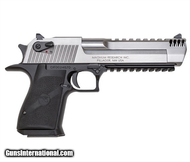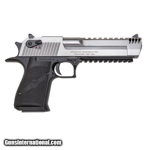 Description: Manufacturer: Magnum Research Model: Desert Eagle® Mark XIX SKU: DE44ASIMB Caliber: .44 Magnum Capacity: 8 Rounds Barrel Length: 6" Black Hard Coat Alloy Frame with Full Weaver Style Accessory Rail, Stainless Steel Slide and Barrel with Integral Muzzle Brake Overall Length: 10.75" Weight: 4 lbs 6.6 ozs Finish: Black Aluminum Frame and Stainless Steel Slide Grips: Black Polymer Sights: Combat Type, Fixed Twist: 1:18" All items are factory new in box unless otherwise stated. Based on the information available to us, the above specifications describe this item to the best of our knowledge. For further information, please contact or visit the manufacturer's . SOLD |