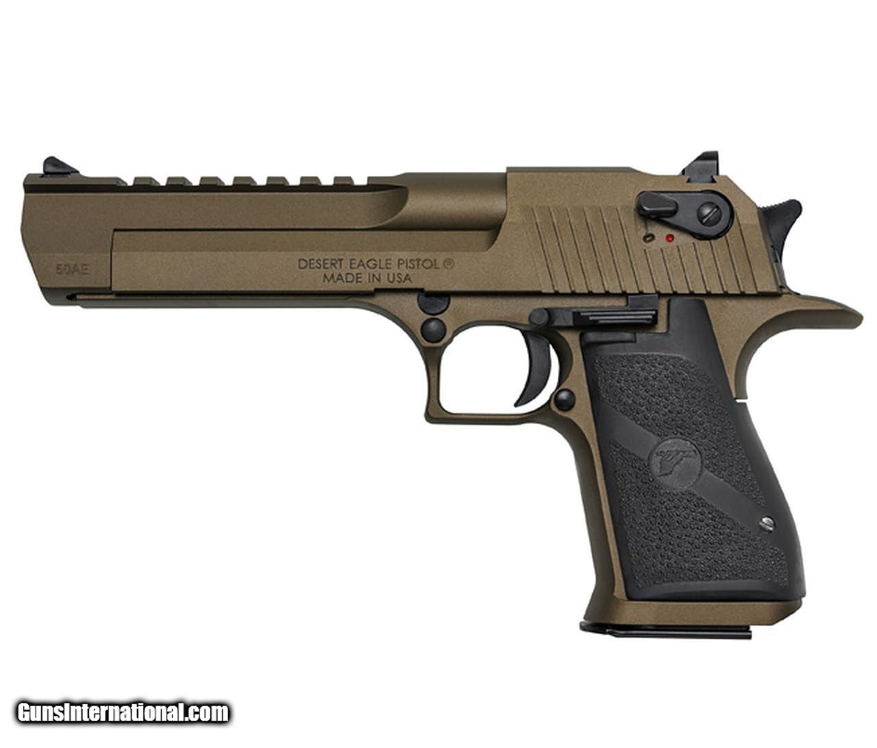 Description: Guns Listing ID: 495711 After 25 years of being accessorized, customized and re-imagined in countless movies, television shows and video games, the Desert Eagle Pistol has emerged as a pop-culture icon. You can customize your Desert Eagle Pistol with a variety of impressive finishes to add your own distinctive twist to this timeless firearm. All models feature a full picatinny style accessory rail on the barrel from the end of the chamber to right behind the front sight and standard ambidextrous safeties. - CALIBER .50AE, .44 MAG, .357 MAG - 3 (6\") Barrels - MAGAZINE (3) .50AE 7rd, .44 MAG 8rd, .357 MAG 9rd capacity - SIGHTS Fixed Combat - GRIPS Black rubber - INCLUDES .357 Magnum Bolt Assembly and protective case SOLD Manufacturer: MAGNUM RESEARCH Model: DESERT EAGLE MK XIX COMPONENT SYSTEM Caliber Info: MULTI Condition: new Barrels: 6" barrel Finish: BURNT BRONZE |