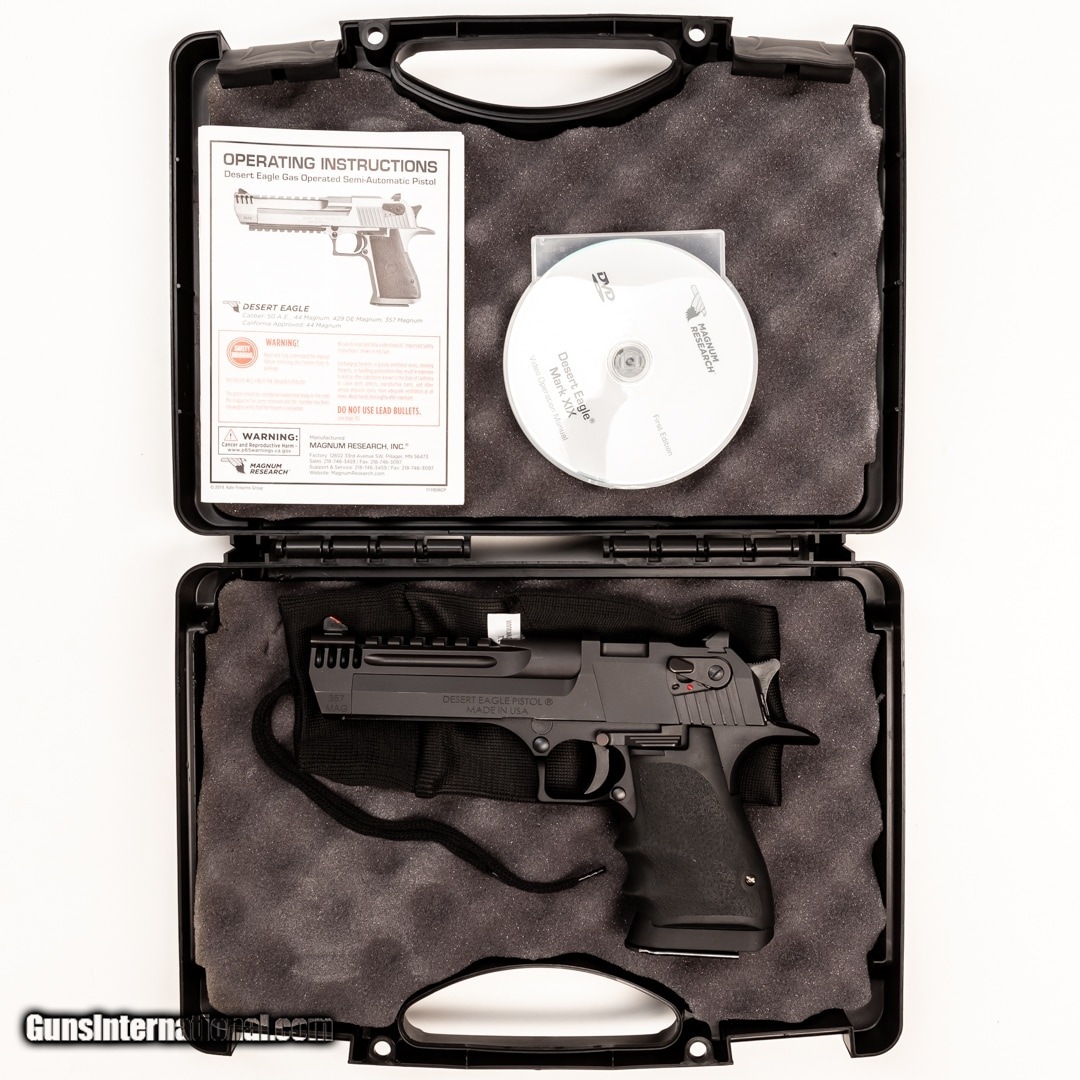 Description: Guns Listing ID: 927439 After 25 years of being accessorized, customized, and re-imagined in countless movies, television shows, and video games, the Desert Eagle has emerged as a pop-culture icon. The power and signature style make this a handgun that people don‚‚t necessarily need but definitely want. This Desert Eagle has a 5\" ported barrel. Purchase includes the original case, manual, DVD, gun sock, and one 9-round magazine. Get the best bang for your buck when you get a Certified Used Firearm . When you see the Certified Used stamp on any of our firearms, you can be confident that you’re getting exactly what you want – a gun only in very good to excellent condition and held to the highest quality standard. All Certified Used Guns come with a ‘no questions asked’ return policy . PLUS, ALL CERTIFIED USED GUNS SHIP FREE SOLD Manufacturer: MAGNUM RESEARCH Model: DESERT EAGLE PISTOL Caliber Info: .357 MAG Condition: Used - Non-Certified Barrels: 5 BARREL Finish: BLACK |