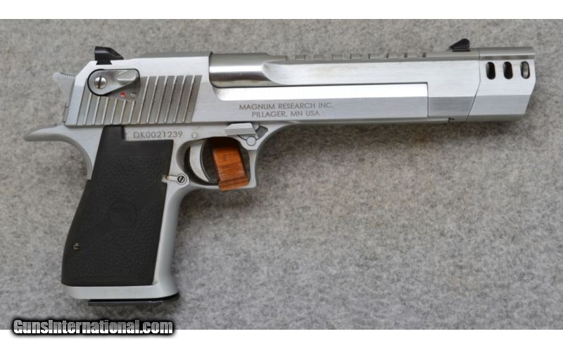 Description: Very good condition overall with handling wear. SOLD Caliber Info: .50 Action Express Metal Condition: Very Good Bore Condition: Good Barrels: 7 1/2" Overall with a Muzzle Brake Triggers: Single Action Stock: Synthetic Grips Weight: 4 lbs. 12 ozs. Sights: Fixed Sights Item Location: Hamburg, PA |