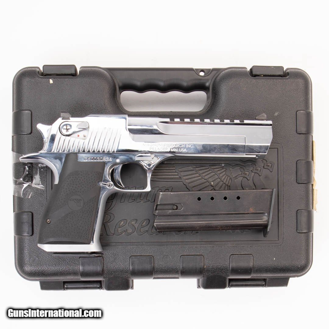 Description: Guns Listing ID: 478870 This Desert Eagle is in excellent condition! It features an ambidextrous safety and includes the original case, owner‚‚s manual, two 7-round magazines, and a DVD. Get the best bang for your buck when you get a Certified Used Firearm . When you see the Certified Used stamp on any of our firearms, you can be confident that you‚‚re getting exactly what you want – a gun only in very good to excellent condition and held to the highest quality standard. All Certified Used Guns come with a ‚‚no questions asked‚‚ return policy . PLUS, ALL CERTIFIED USED GUNS SHIP F SOLD Manufacturer: MAGNUM RESEARCH Model: DESERT EAGLE PISTOL Caliber Info: .50 AE Condition: Used - Certified Barrels: 6.00 Action: SEMI AUTOMATIC Finish: CHROME Weight: 4 |
