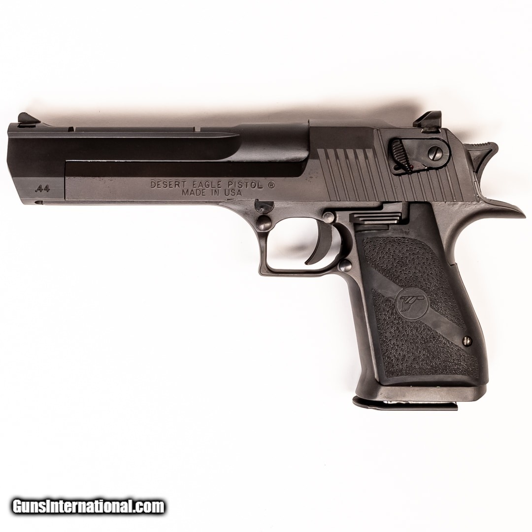 Description: Guns Listing ID: 451070 After 25 years of being accessorized, customized and re-imagined in countless movies, television shows and video games, the Desert Eagle Pistol has emerged as a pop-culture icon. The power and signature style make this a handgun that people don‚‚t necessarily need but definitely want. This Magnum Research Desert Eagle features a black finish and is chambered in .44 magnum SOLD Manufacturer: MAGNUM RESEARCH Model: DESERT EAGLE PISTOL Caliber Info: .44 MAGNUM Condition: Used - Certified Barrels: 6.5 BARREL Finish: BLACK |