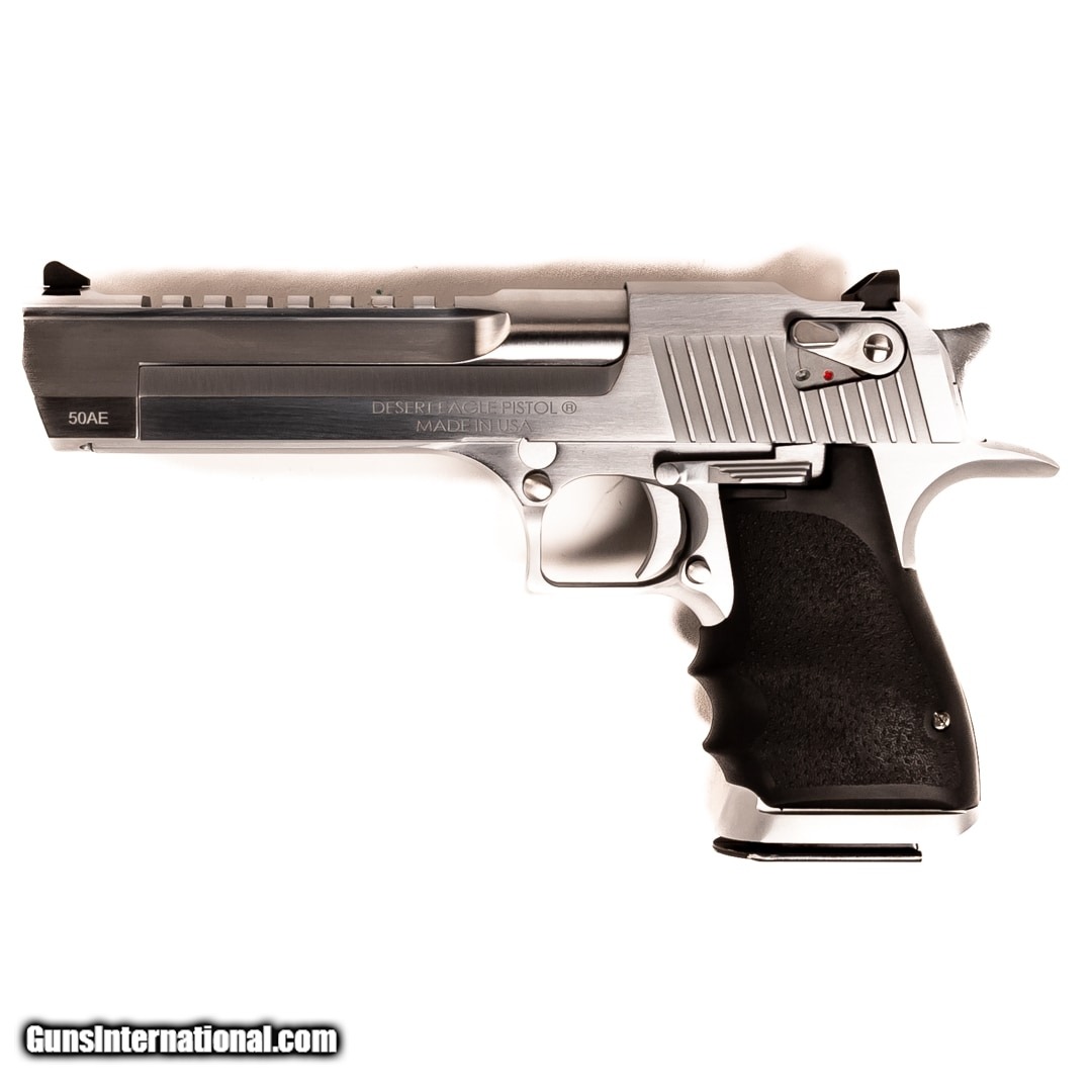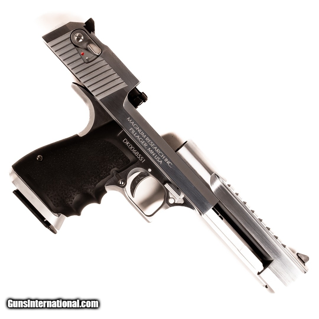 Description: Guns Listing ID: 733649 After 25 years of being accessorized, customized, and re-imagined in countless movies, television shows, and video games, the Desert Eagle has emerged as a pop-culture icon. The power and signature style make this a handgun that people don‚‚t necessarily need but definitely want. This Desert Eagle includes the original case, paperwork, DVD manual, one 7-round magazine, and a gun sock. Get the best bang for your buck when you get a Certified Used Firearm . When you see the Certified Used stamp on any of our firearms, you can be confident that you’re getting exactly what you want – a gun only in very good to excellent condition and held to the highest quality standard. All Certified Used Guns come with a ‘no questions asked’ return policy . PLUS, ALL CERTIFIED USED GUNS SHIP FREE SOLD Manufacturer: MAGNUM RESEARCH Model: DESERT EAGLE PISTOL Caliber Info: .50AE Condition: Used - Certified Barrels: 6 barrel Finish: STAINLESS |