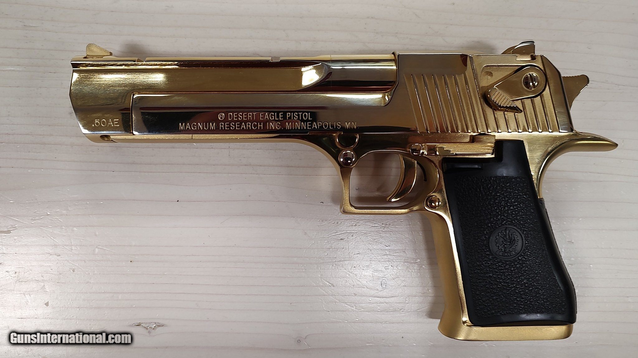 Description: Guns Listing ID: 399719 SOLD Manufacturer: MAGNUM RESEARCH Model: Desert Eagle XIX Caliber Info: .50 AE Condition: Used - Non-Certified Barrels: 6 BARREL Finish: GOLD PLATED Weight: not specified |