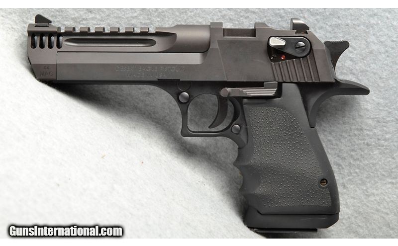 Description: This Desert Eagle was made in the US and has in integral rail for mounting optics. .44 Remington Magnum SOLD Metal Condition: Very good - a few scuffs in the bluing Wood Condition: Grips excellent Bore Condition: Excellent Barrels: 4" excluding compensator Triggers: Single action Weight: 3 lbs. Sights: Windage adjustable iron sights Item Location: Cheektowaga, NY |