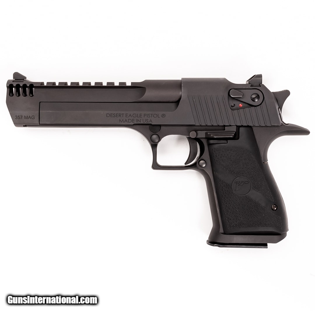 Description: Guns Listing ID: 335807 After 25 years of being accessorized, customized, and re-imagined in countless movies, television shows, and video games, the Desert Eagle has emerged as a pop-culture icon. The power and signature style make this a handgun that people don't necessarily need but definitely want. This Desert Eagle is in excellent condition! It's chambered in 357 Mag and has an integrated muzzle brake. The original case, manual, and one 9-round magazine are included. SOLD Manufacturer: MAGNUM RESEARCH Model: DESERT EAGLE Caliber Info: .357 MAG Condition: Used - Certified Barrels: 6 BARREL Finish: BLACK |