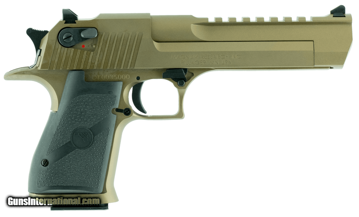 Description: Guns Listing ID: 52282 The Magnum Research Desert Eagle is a family of powerful semi-automatic pistols chambered in 357 Mag 44 Mag or 50 AE. Utilizing a gas-operated rotating bolt more commonly found in rifles the Desert Eagle was the first pistol capable of handling these outsized loads. Fixed sights adorn barrels at 6 or 10 in length depending on model and a rail allows users to mount the scope of their choice to the Desert Eagle. Details Type Gas-operated rotating bolt semiautomatic - Caliber .50 A.E. - Overall Length w 6 Barrel 10.75 27.3 cm - Bore Diameter .495 12.6 mm - Height 6.25 15.9 cm - Slide Width 1.25 32 mm - Construction High quality carbon steel barrel frame and slide w full Weaver style accessory rail - Finish Cerakote Burnt Bronze with Black Appointments - Trigger Single action approx. 4 lb. pull - Trigger Reach 2.75 70 mm - Sight Radius 8.5 215 mm - Sights Combat type fixed - Polygonal Rifling w Right Hand Twist 6 lands grooves 1 turn in 19 483 mm - Weight (Empty Magazine) 4 lbs. 5.8 oz. - Magazine Capacity 7 rounds SOLD Manufacturer: MAGNUM RESEARCH Model: DESERT EAGLE Caliber Info: 50 AE Condition: new Barrels: 6 barrel |