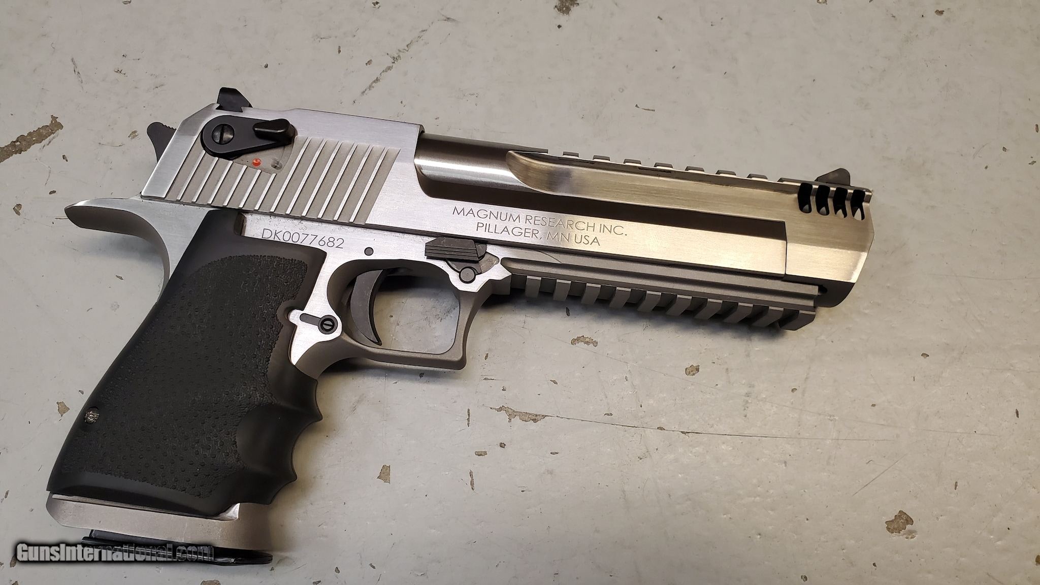 Description: Guns Listing ID: 489565 Comes with case and extra grip panels. SOLD Manufacturer: MAGNUM RESEARCH Model: DESERT EAGLE Caliber Info: 50 AE Condition: Used - Non-Certified Barrels: 6 BARREL |