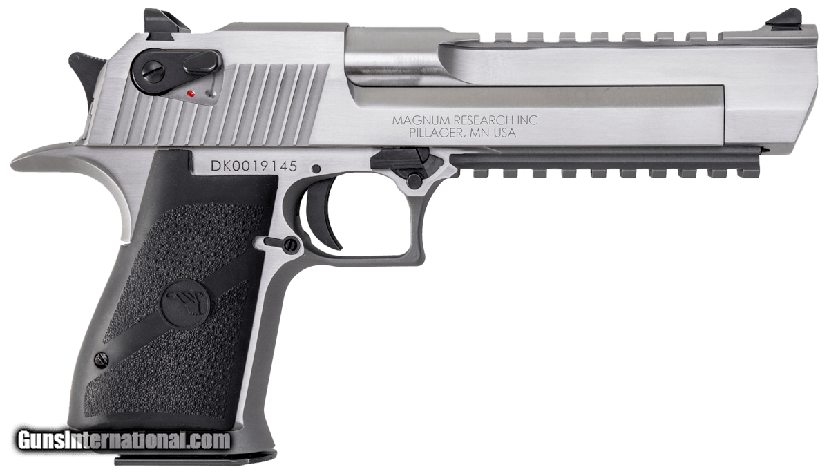 Description: Guns Listing ID: 1643 The Magnum Research Desert Eagle is a family of powerful semi-automatic pistols chambered in 357 Mag 44 Mag or 50 AE. Utilizing a gas-operated rotating bolt more commonly found in rifles the Desert Eagle was the first pistol capable of handling these outsized loads. Fixed sights adorn barrels at 6 or 10 in length depending on model and a rail allows users to mount the scope of their choice to the Desert Eagle. Details Type Gas-operated rotating bolt semiautomatic - Caliber .50 A.E. - Overall Length w 6 Barrel 10.75 27.3 cm - Bore Diameter .495 12.6 mm - Height 6.25 15.9 cm - Slide Width 1.25 32 mm - Construction High quality stainless steel barrel frame and slide w full Weaver style accessory rail - Finish Stainless Steel - Trigger Single action approx. 4 lb. pull - Trigger Reach 2.75 70 mm - Sight Radius 8.5 215 mm - Sights Combat type fixed - Polygonal Rifling w Right Hand Twist 6 lands grooves 1 turn in 19 483 mm - Weight (Empty Magazine) 4 lbs. 7 oz. - Magazine Capacity 7 rounds SOLD Manufacturer: MAGNUM RESEARCH Model: DESERT EAGLE Caliber Info: .50 AE Condition: new Barrels: 6 BARREL |