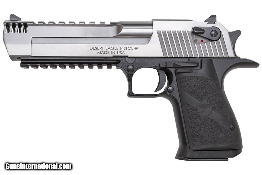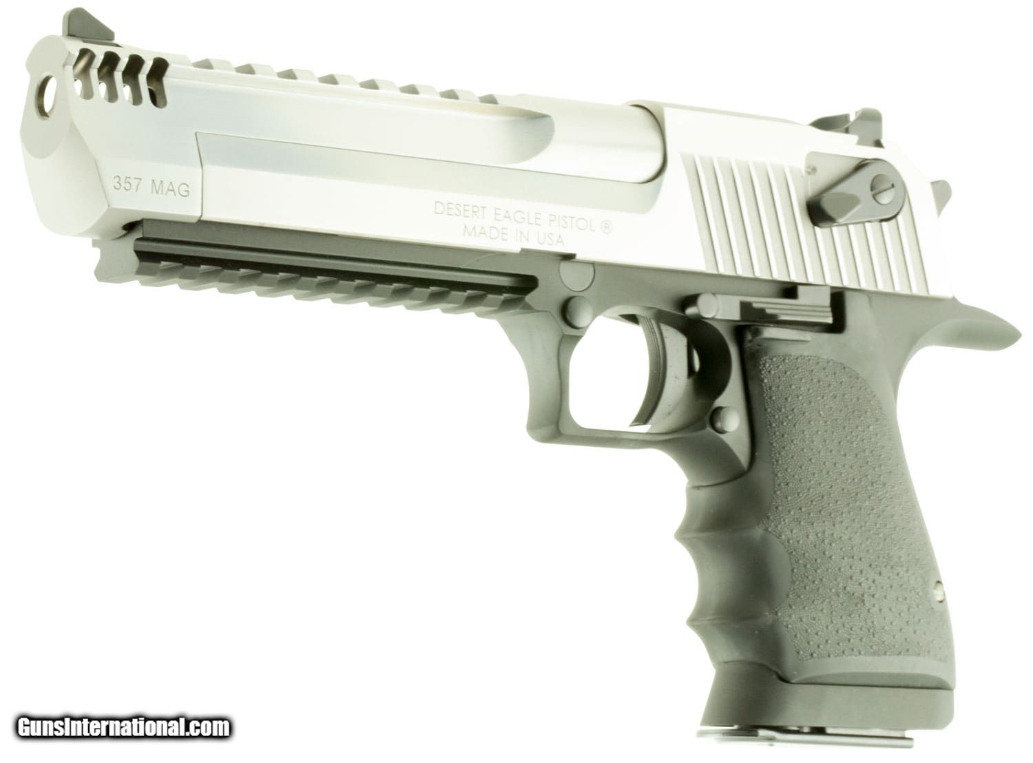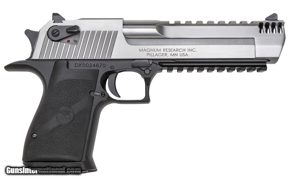 Description: Guns Listing ID: 558 The Magnum Research Desert Eagle is a family of powerful semi-automatic pistols chambered in 357 Mag 44 Mag or 50 AE. Utilizing a gas-operated rotating bolt more commonly found in rifles the Desert Eagle was the first pistol capable of handling these outsized loads. Fixed sights adorn barrels at 6 or 10 in length depending on model and a rail allows users to mount the scope of their choice to the Desert Eagle. Details Type Gas-operated rotating bolt semiautomatic - Caliber .357 Magnum - Barrel Length 6 - Overall Length 10.75 - Bore Diameter .357 - Height 6.25 - Slide Width 1.25 - Construction Black Hard Coat Alloy Frame with Full Weaver Style Accessory Rail Stainless Steel Slide and Barrel with Integral Muzzle Brake and Black Appointments - Finish Black Aluminum Frame Stainless Steel Slide - Trigger Single action approx. 4 lb. pull - Trigger Reach 2.75 - Sight Radius 8.5 - Sights Combat type fixed - Polygonal Rifling w Right Hand Twist 6 lands grooves 1 turn in 14 - Weight (Empty Magazine) 4 lbs. 8.4 oz. - Magazine Capacity 9 rounds SOLD Manufacturer: MAGNUM RESEARCH Model: DESERT EAGLE Caliber Info: .357 MAG Condition: new Barrels: 6 BARREL Finish: BLACK |
