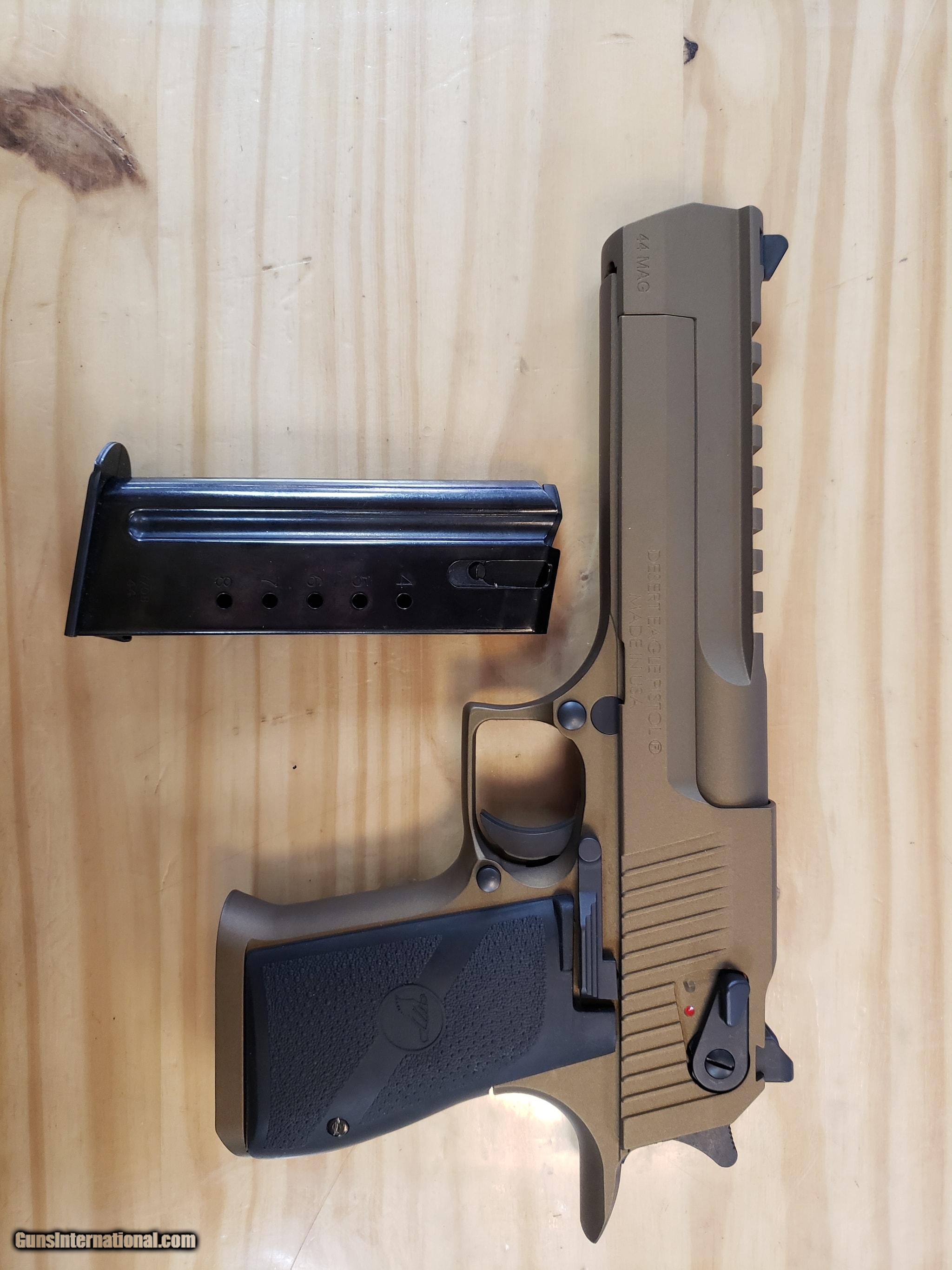 Description: Guns Listing ID: 662297 Stock Burnt Bronze/ Black Grips Finish Burnt Bronze Sights Fixed Capacity 8+1 Model Series Desert Eagle Barrel Length 6 Overall Length 10.75 ***CASE IS INCLUDED*** SOLD Manufacturer: MAGNUM RESEARCH Model: DESERT EAGLE Caliber Info: .44 MAGNUM Condition: Used - Non-Certified Barrels: 6 BARREL |