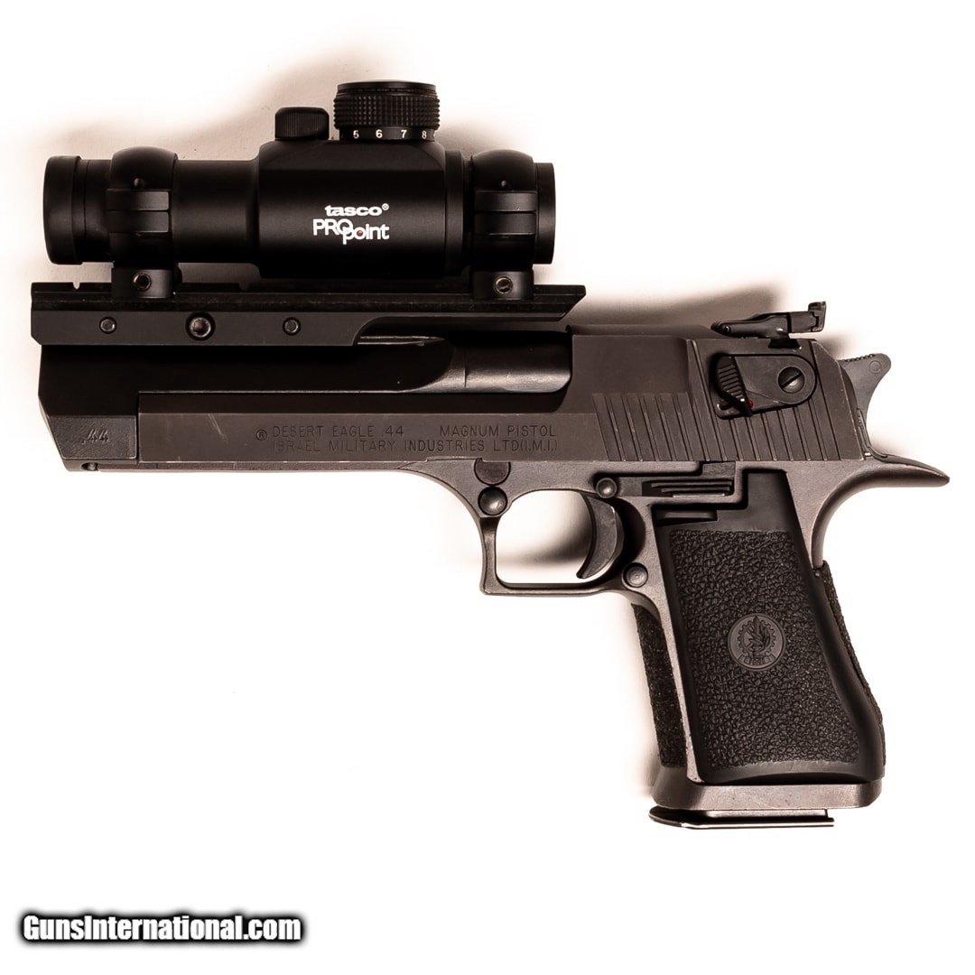 Description: Guns Listing ID: 638812 After 25 years of being accessorized, customized, and re-imagined in countless movies, television shows, and video games, the Desert Eagle pistol has emerged as a pop-culture icon. The power and signature style make this a handgun that people don’t necessarily need but definitely want. This Desert Eagle from Israel Military Industries (IMI) has a Tasco Pro Point PDP3 and includes an SKB case, the owner‚‚s manual, and one 8-round magazine SOLD Manufacturer: MAGNUM RESEARCH Model: DESERT EAGLE Caliber Info: .44 MAGNUM Condition: Used - Certified Barrels: 6" BARREL Finish: BLACK |