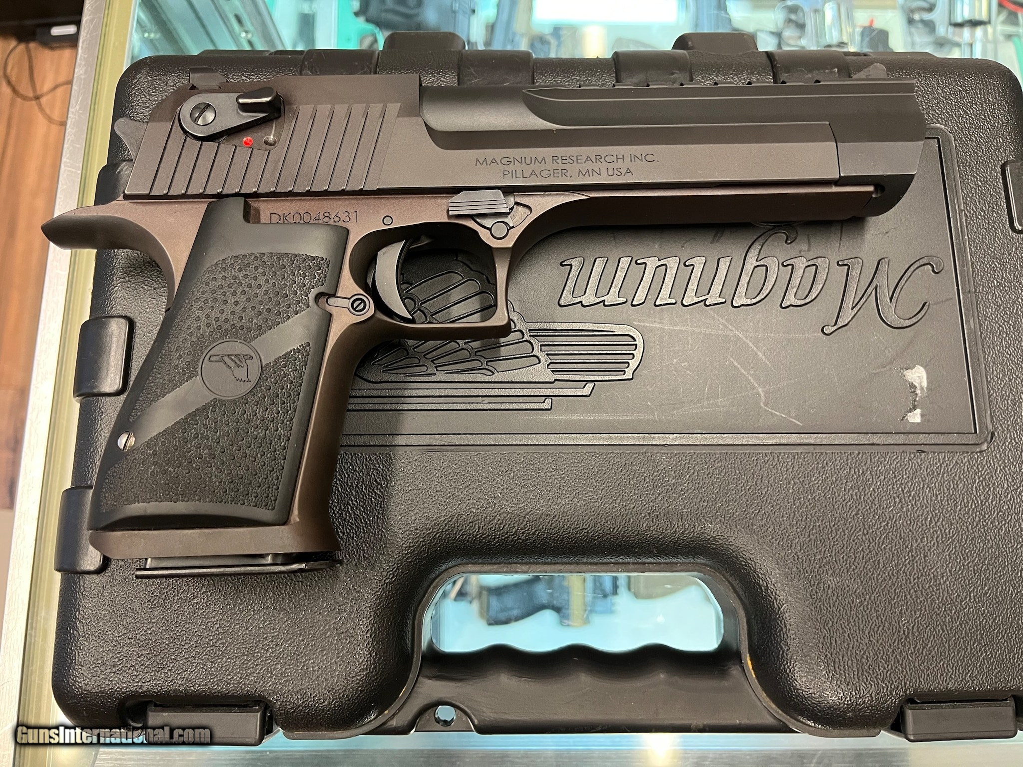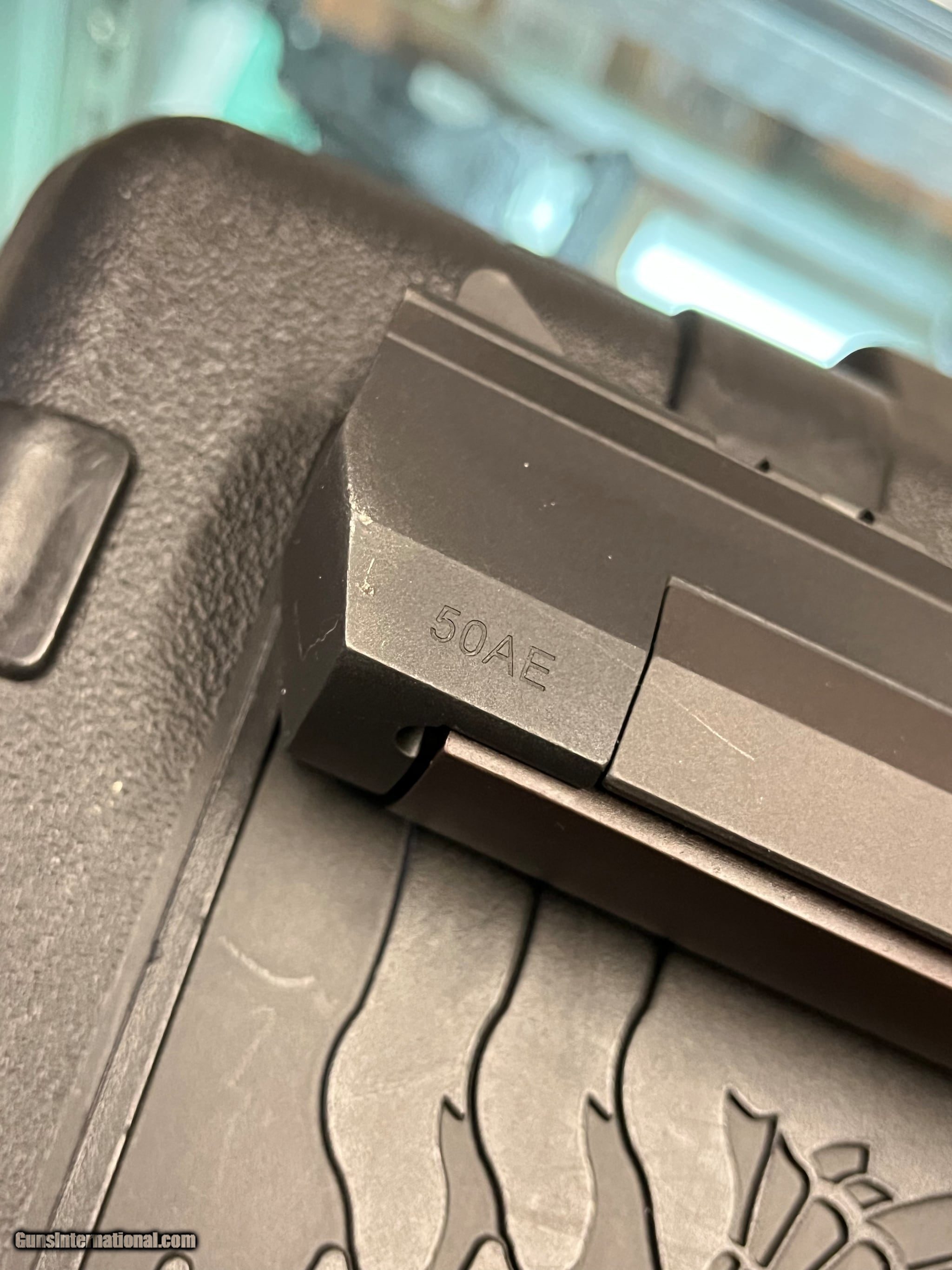 Description: Guns Listing ID: 698794 This magnum research desert eagle is a semi automatic pistol chambered in 50 AE. Besides a little nick at the front of the slide near the muzzle, this firearm is in fantastic shape. Comes with the original box, magazine, manual, gun lock. SOLD Manufacturer: MAGNUM RESEARCH Model: DESERT EAGLE Caliber Info: .50 AE Condition: Used - Non-Certified Barrels: 6 BARREL |