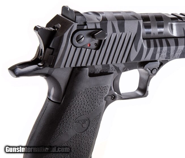 Description: Guns Listing ID: 665659 The Magnum Research Desert Eagle is a family of powerful semi-automatic pistols chambered in 357 Mag 44 Mag or 50 AE. Utilizing a gas-operated rotating bolt more commonly found in rifles the Desert Eagle was the first pistol capable of handling these outsized loads. Fixed sights adorn barrels at 6 or 10 in length depending on model and a rail allows users to mount the scope of their choice to the Desert Eagle. Details Type Gas-operated rotating bolt semiautomatic - Caliber .44 MAGNUM - Overall Length w 6 Barrel 10.75 27.3 cm - Bore Diameter .429 10.9 mm - Height 6.25 15.9 cm - Slide Width 1.25 32 mm - Construction High quality carbon steel barrel frame and slide w full Weaver style accessory rail - Finish Black Tiger Stripe - Trigger Single action approx. 4 lb. pull - Trigger Reach 2.75 70 mm - Sight Radius 8.5 215 mm - Sights Combat type fixed - Polygonal Rifling w Right Hand Twist 6 lands grooves 1 turn in 18 457 mm - Weight (Empty Magazine) 4 lbs. 6.6 oz.. - Magazine Capacity 8 rounds SOLD Manufacturer: MAGNUM RESEARCH Model: DESERT EAGLE Caliber Info: .44 MAGNUM Condition: new Barrels: 6 BARREL |
