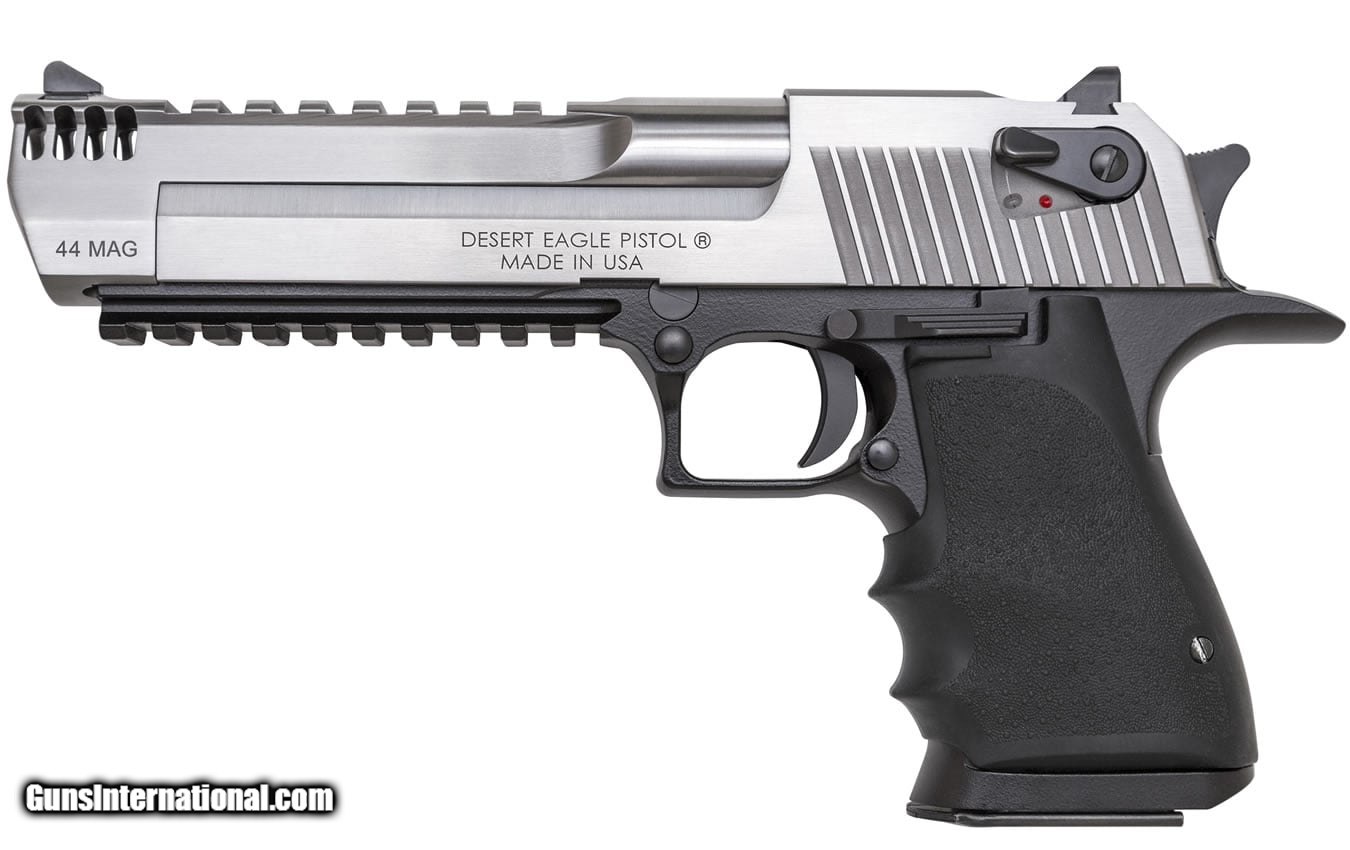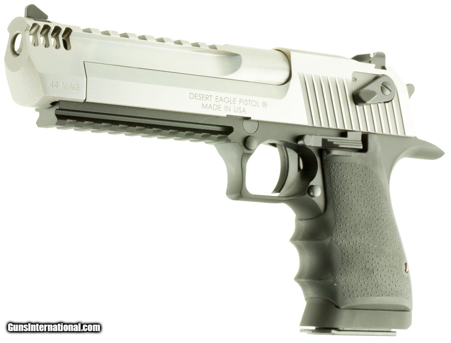 Description: Guns Listing ID: 557 The Magnum Research Desert Eagle is a family of powerful semi-automatic pistols chambered in 357 Mag 44 Mag or 50 AE. Utilizing a gas-operated rotating bolt more commonly found in rifles the Desert Eagle was the first pistol capable of handling these outsized loads. Fixed sights adorn barrels at 6 or 10 in length depending on model and a rail allows users to mount the scope of their choice to the Desert Eagle. Details Type Gas-operated rotating bolt semiautomatic - Caliber .44 Magnum - Barrel Length 6 - Overall Length 10.75 - Bore Diameter .429 - Height 6.25 - Slide Width 1.25 - Construction Black Hard Coat Alloy Frame with Full Weaver Style Accessory Rail Stainless Steel Slide and Barrel with Integral Muzzle Brake and Black Appointments - Finish Black Aluminum Frame Stainless Steel Slide - Trigger Single action approx. 4 lb. pull - Trigger Reach 2.75 - Sight Radius 8.5 - Sights Combat type fixed - Polygonal Rifling w Right Hand Twist 6 lands grooves 1 turn in 18 - Weight (Empty Magazine) 4 lbs. 6.6 oz. - Magazine Capacity 8 rounds SOLD Manufacturer: MAGNUM RESEARCH Model: DESERT EAGLE Caliber Info: .44 MAGNUM Condition: new Barrels: 6 BARREL Finish: BLACK |