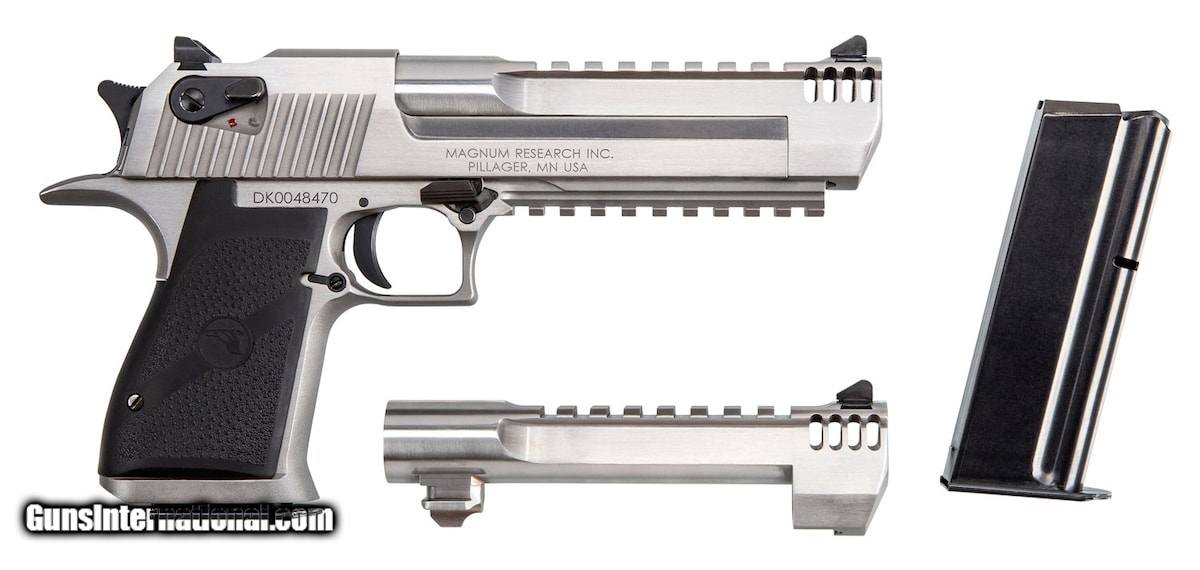 Description: Guns Listing ID: 282570 The construction of the Mark XIX Desert Eagle utilizes the latest CNC machine technology providing exacting specifications with tight tolerances creating a work of art in a precision firearm. The grip is anatomically formed and provides an ideal hand seating angle for twohanded shooting allowing for comfortable rapid and accurate firing. The picatinny style accessory rail easily allows for aftermarket optics and scope rings. SOLD Manufacturer: MAGNUM RESEARCH Model: DESERT EAGLE Caliber Info: .429 DE Condition: new Barrels: 6 BARREL Finish: STAINLESS |