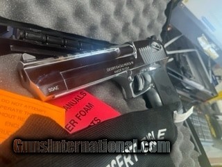 Description: Guns Listing ID: 817291 MRDE50PC SPECIFICATIONS MANUFACTURER: Magnum Research FAMILY: Desert Eagle Series MODEL: Desert Eagle TYPE: Semi-Auto Pistol ACTION: Single Action CALIBER/GAUGE: 50 AE FINISH: Polished Chrome FINISH TYPE: Applied Finish FRAME: Steel Frame BARREL: 6.0\" OVERALL LENGTH: 10.75\" RATE-OF-TWIST: 1-in-19 CAPACITY: 7 + 1 SIGHTS: Fixed SIGHT TYPE: Fixed Sights WEIGHT: 69.8 oz. SHIPPING WEIGHT: 8.15 lbs. SAFETY FEATURES: Ambidextrous ADDL INFO: Weaver Style Accessory Rail MFG MODEL NO: DE50PC UPC: 761226022985 WARNING Cancer and Reproductive Harm P65Warnings.ca.gov SOLD Manufacturer: MAGNUM RESEARCH Model: DESERT EAGLE Caliber Info: .50 AE Condition: Used - Non-Certified Barrels: 6 BARREL |